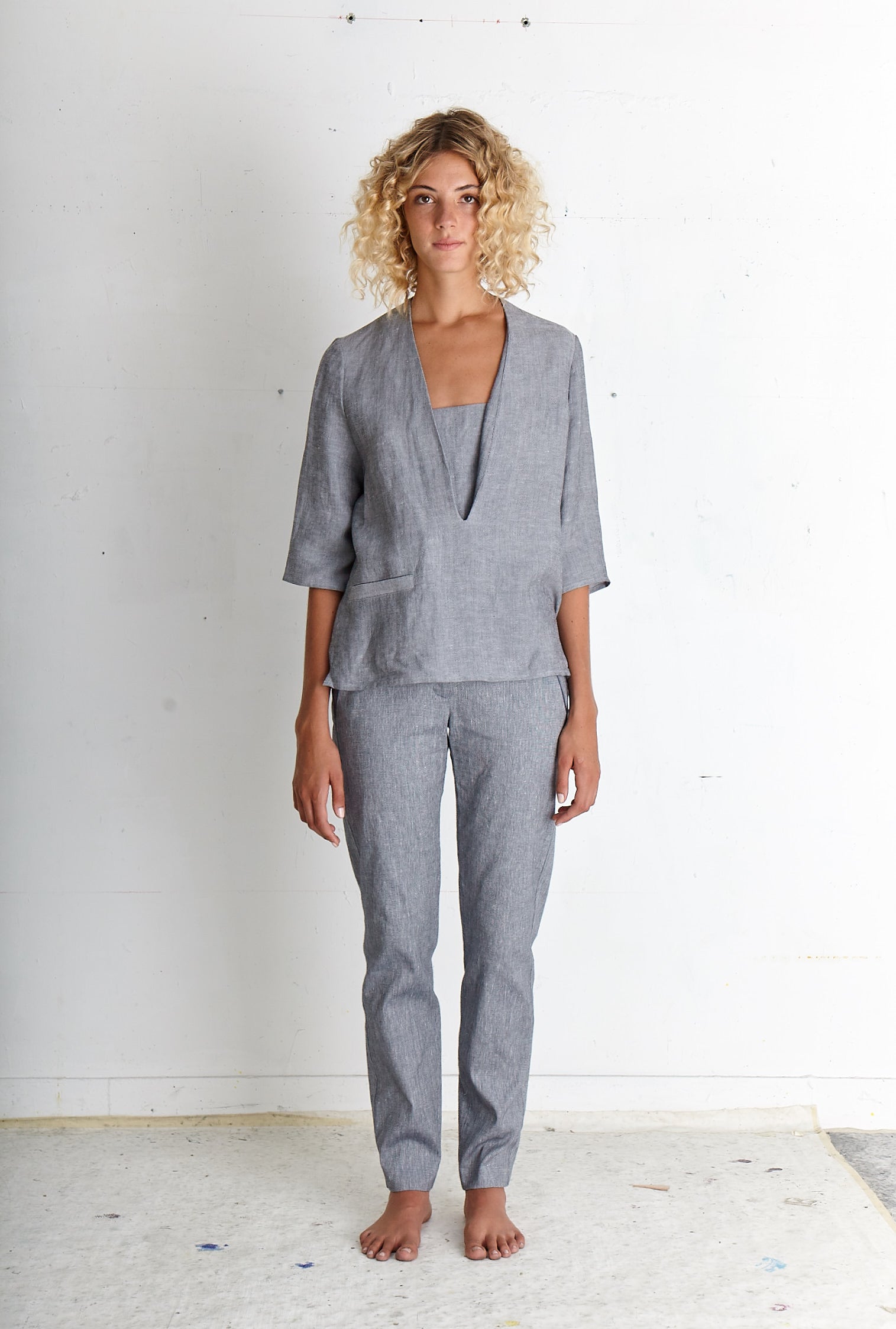 Ce modèle a été dessiné et réalisé dans notre atelier d'Ivry-sur-Seine, la gradation et mise en coupe à Hazebrouck dans le Nord de la France et le montage a été réalisé par des ateliers en Pologne.