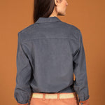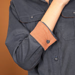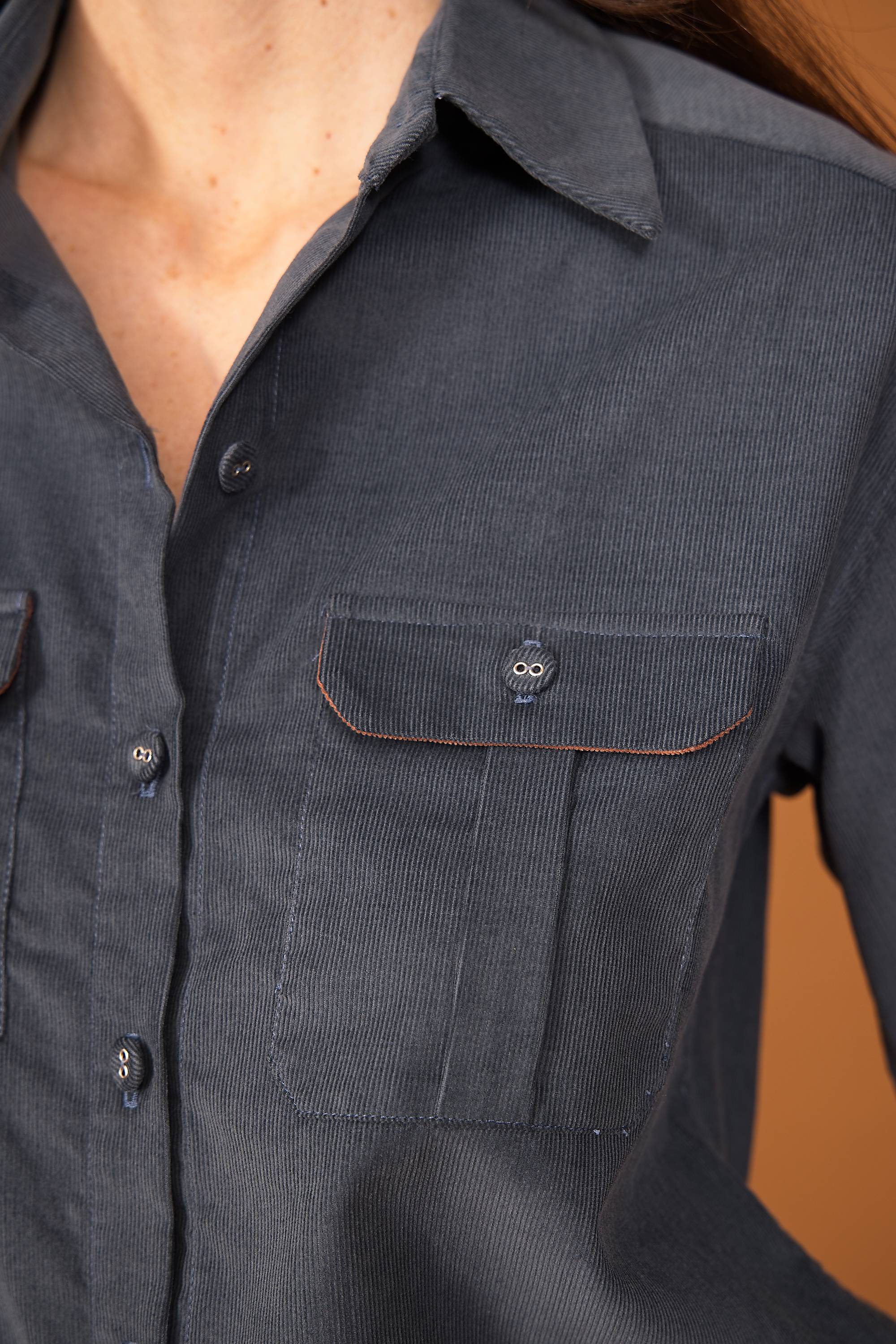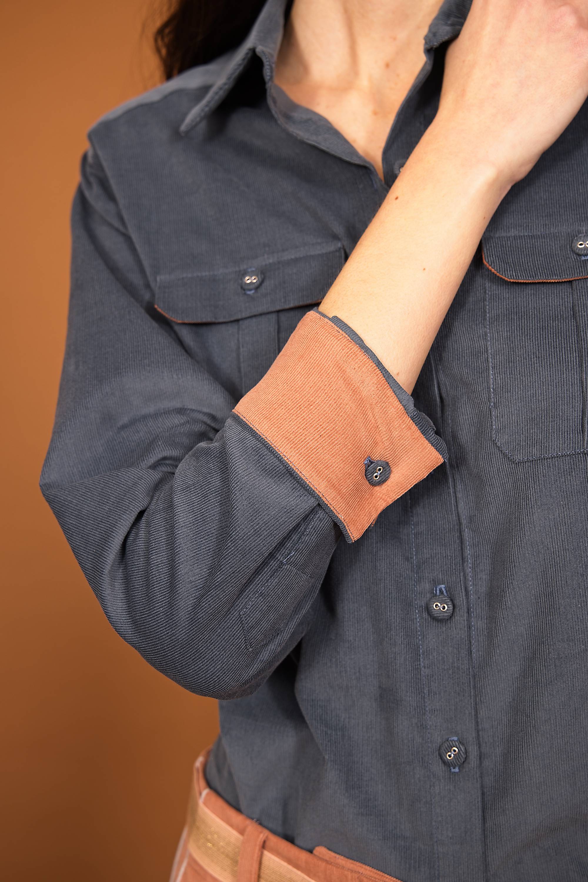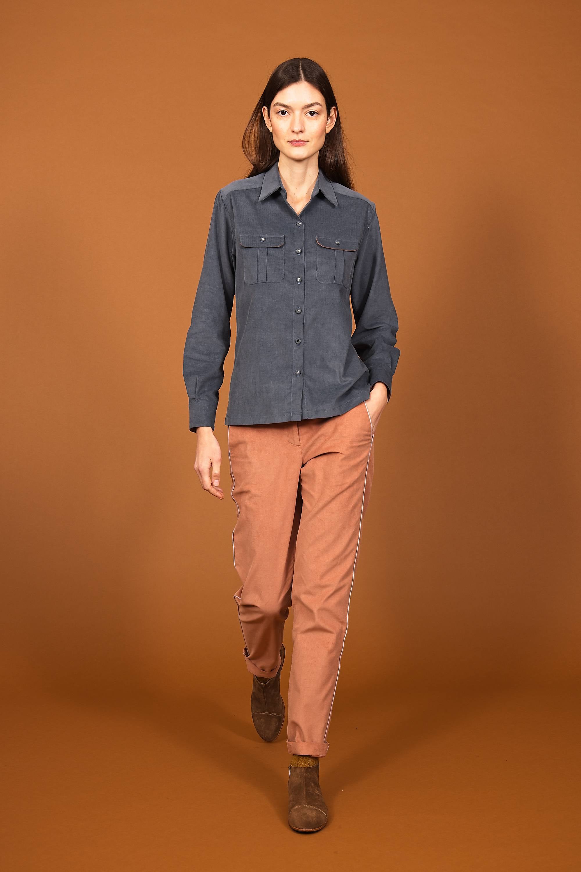 Chemise en coton de velours finement cotelé, 2 poches à rabats sur la poitrine, manches longues, poignets bicolores