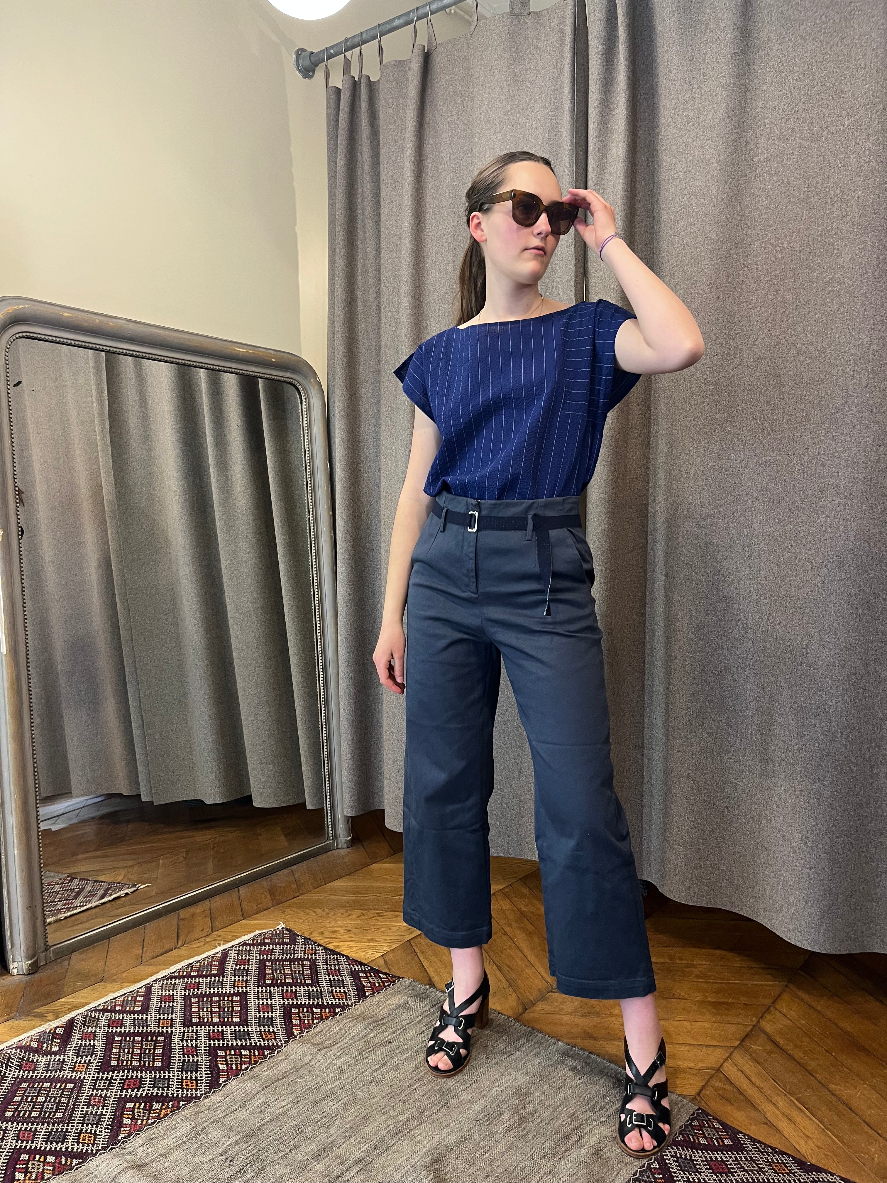 Le pantalon SEIGNER est un incontournable pour un style chic et naturel au quotidien. on adore son détail à la ceinture avec ce joli galon en lurex élastiqué navy et sa très belle boucle.