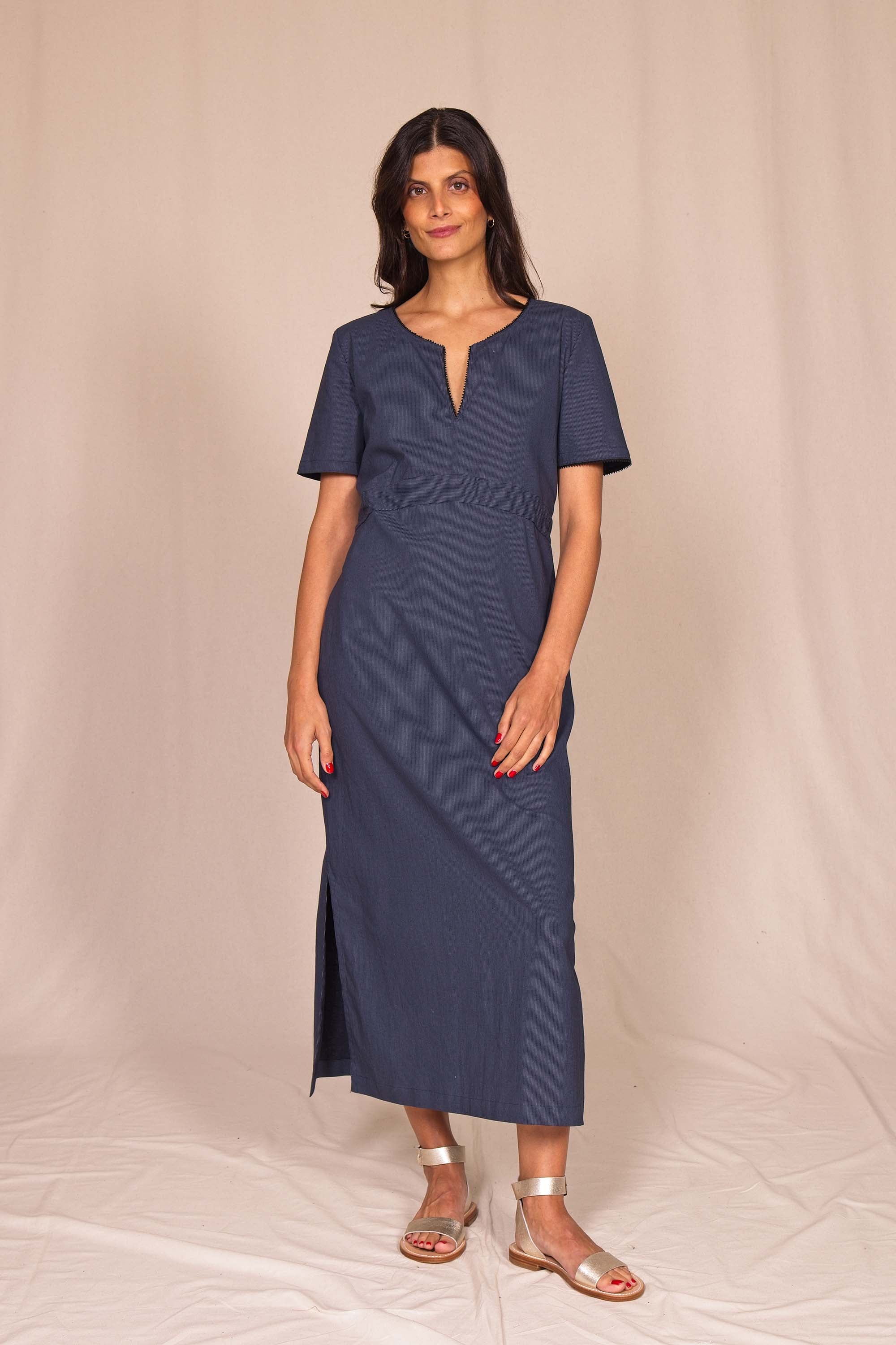 Misez sur cette robe longue et légère pour son allure chic et intemporelle au colori bleu.