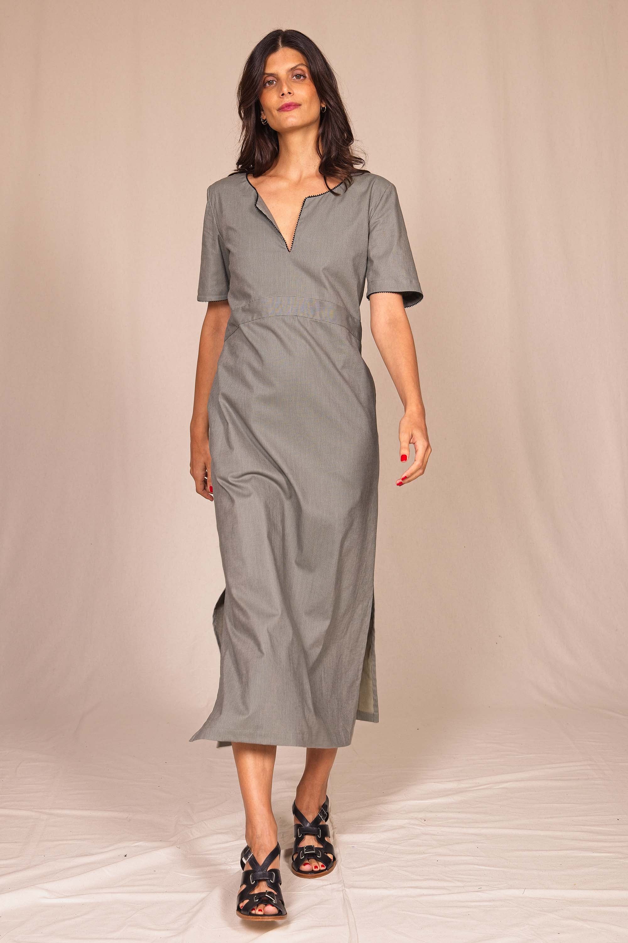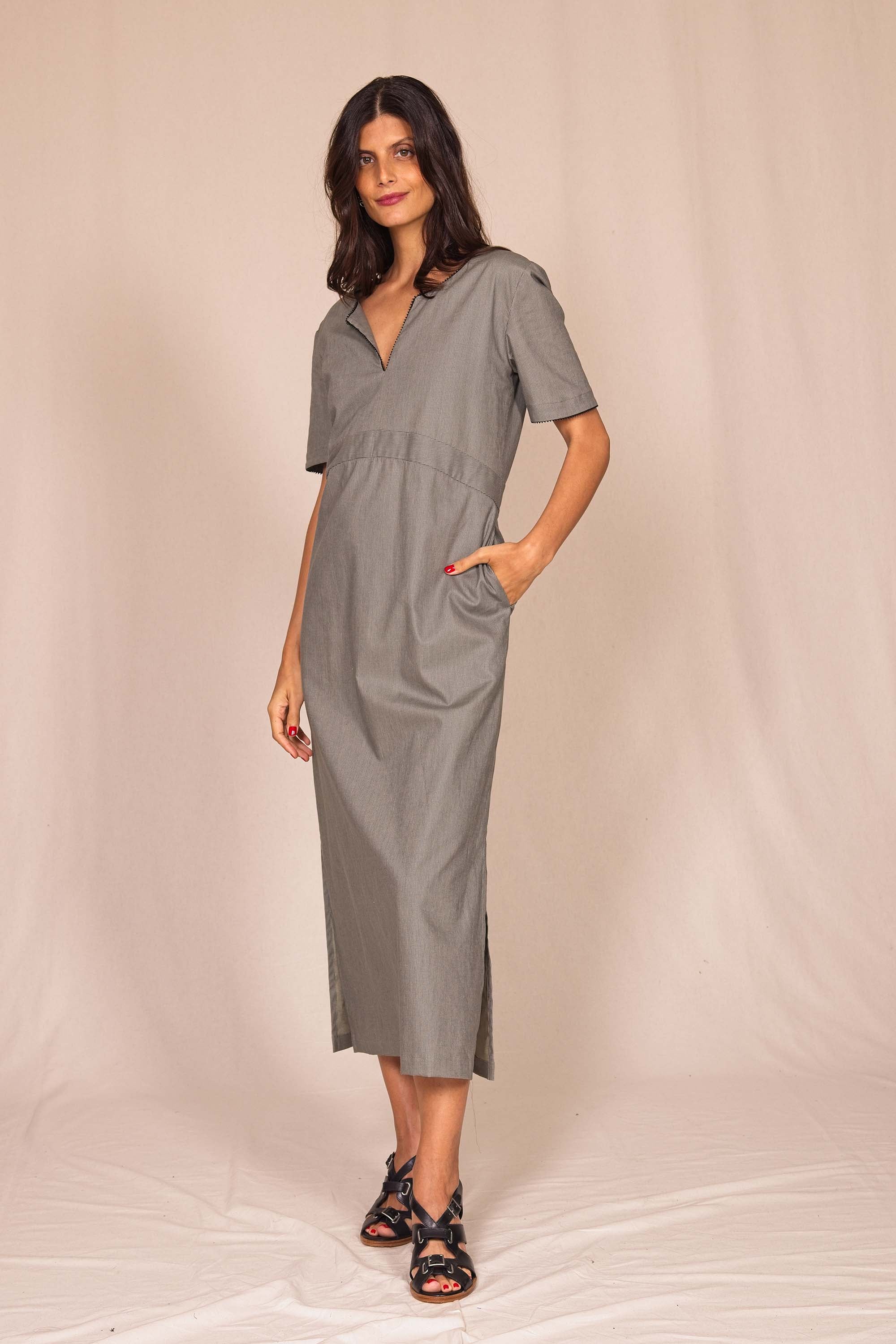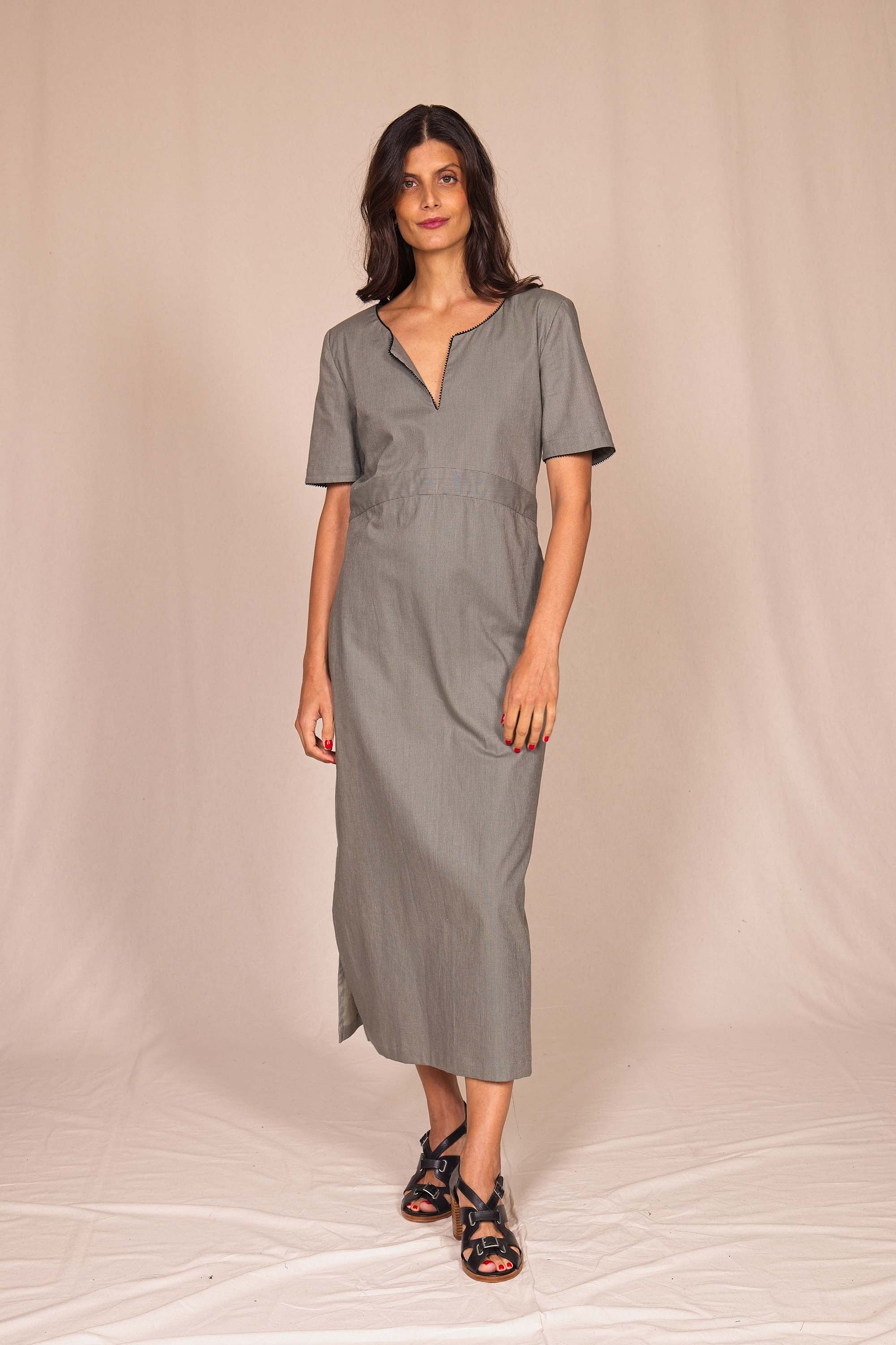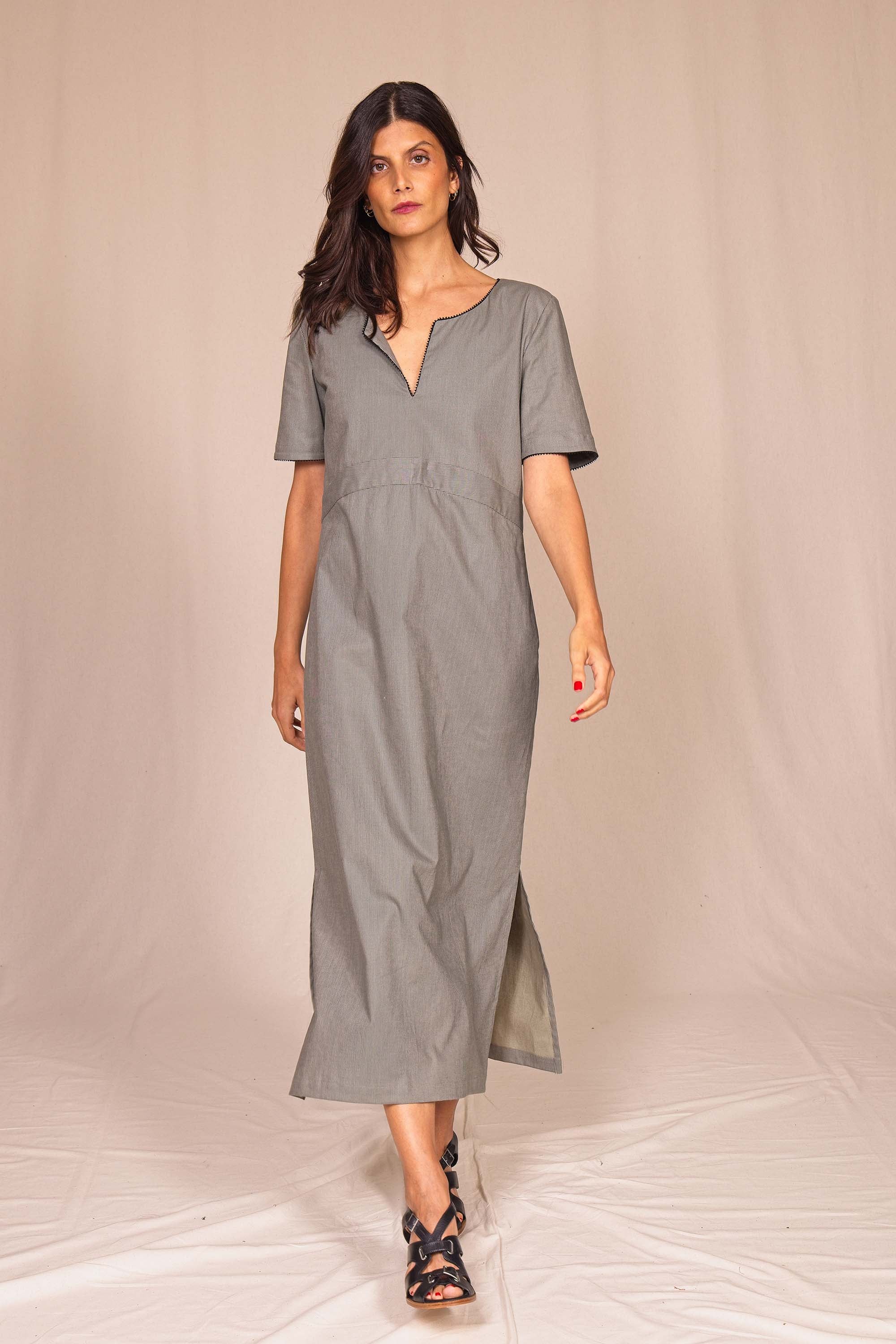 Misez sur cette robe longue et légère pour son allure chic et intemporelle au coloris gris.