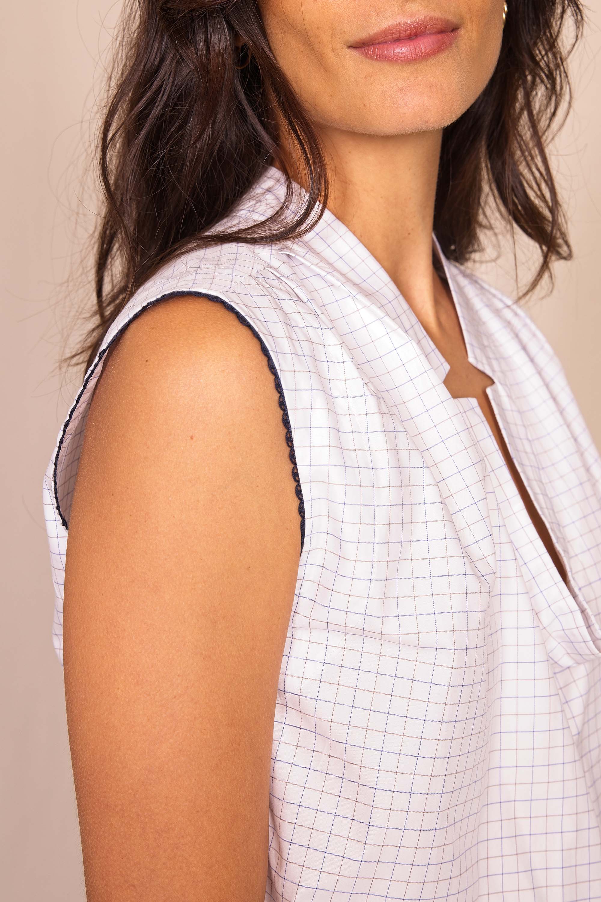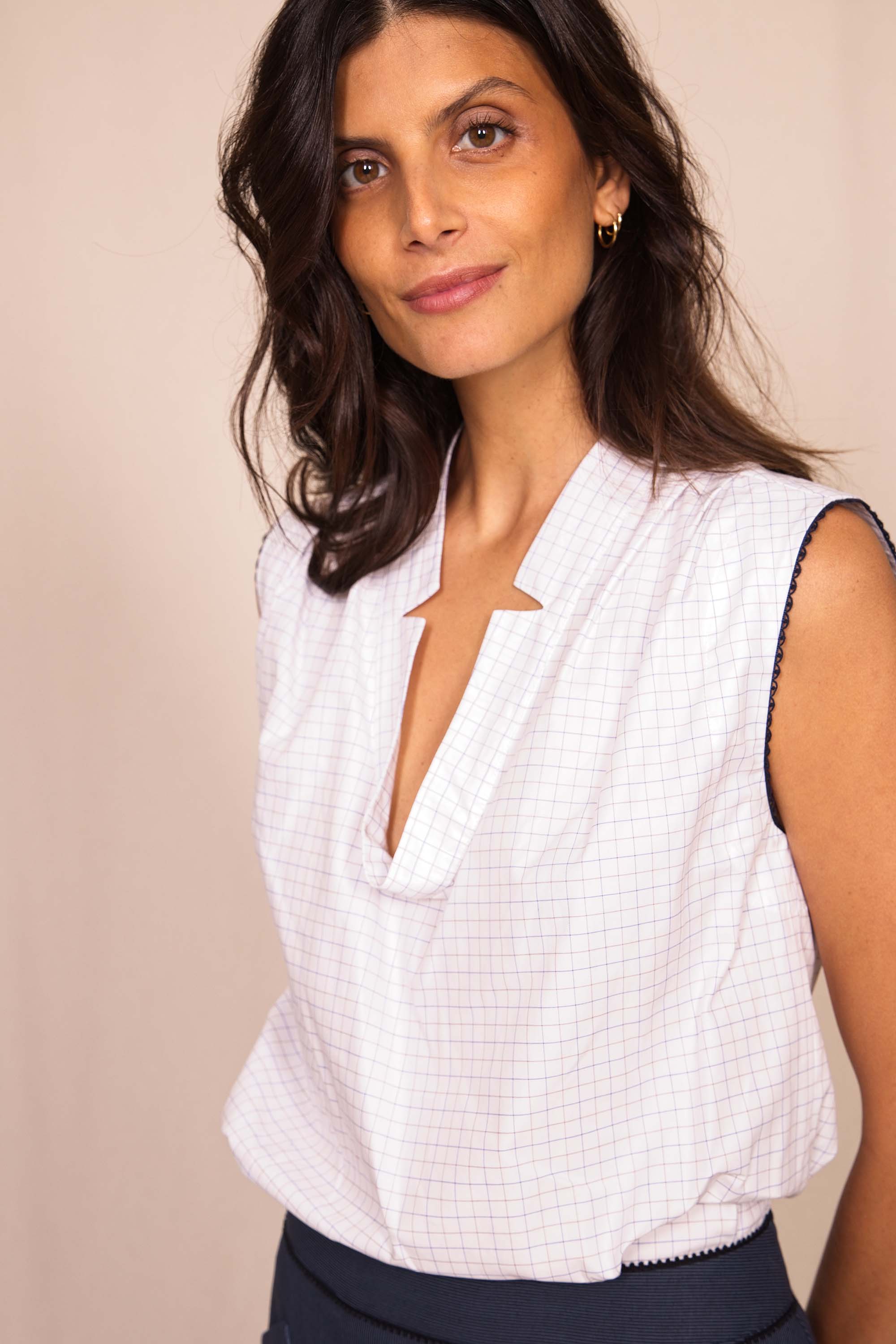 Petit top sans manches tout en légèreté qui se distingue par le très beau travail du col.