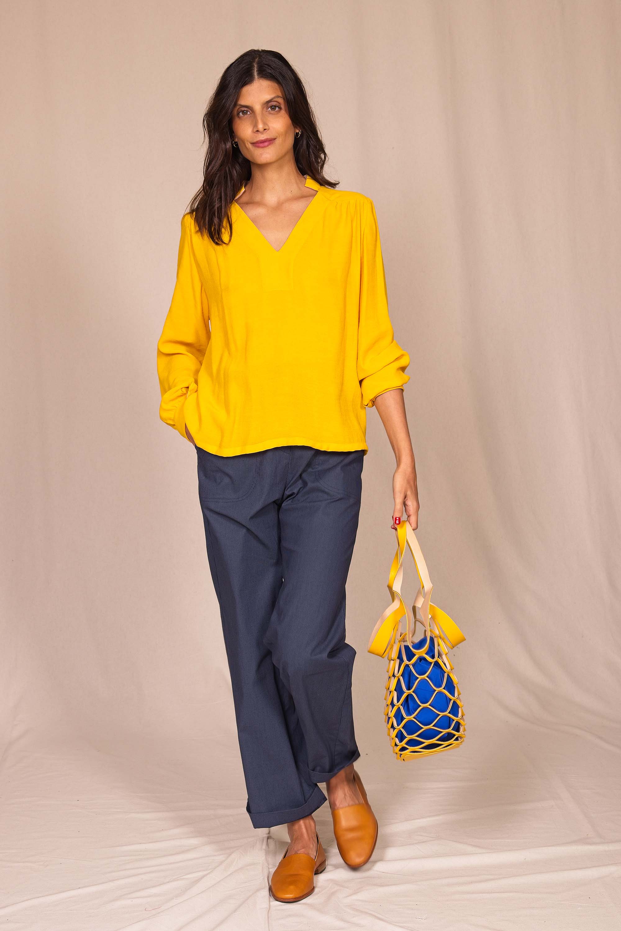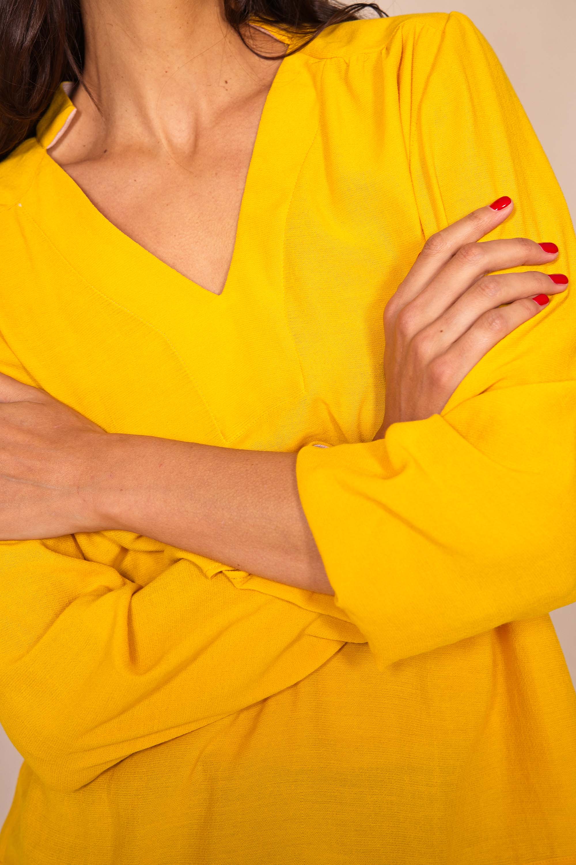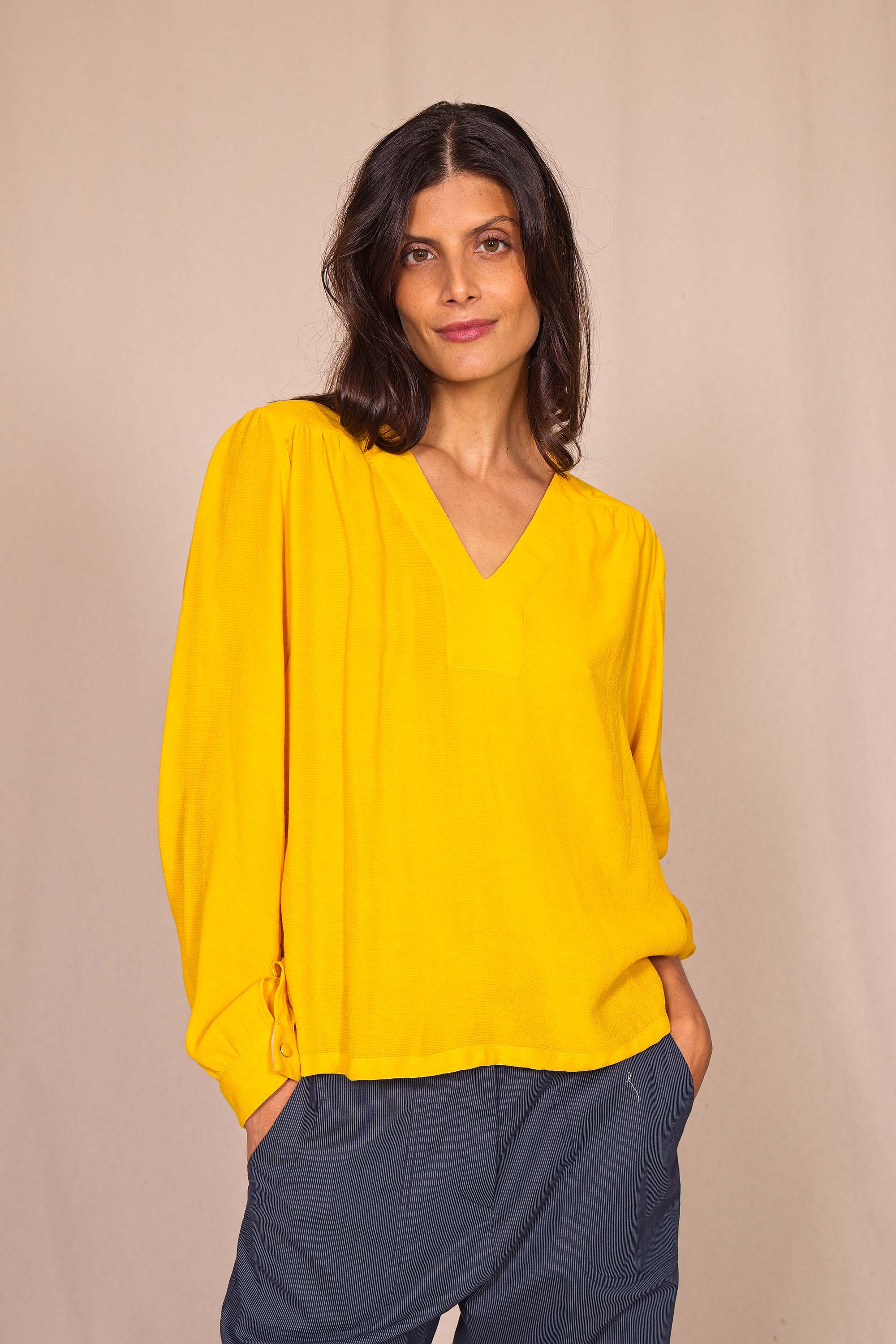 Cette blouse jaune offre un style élégant et confortable. Elle vous sublimera tout au long de la journée, au travail et lors de vos soirées.