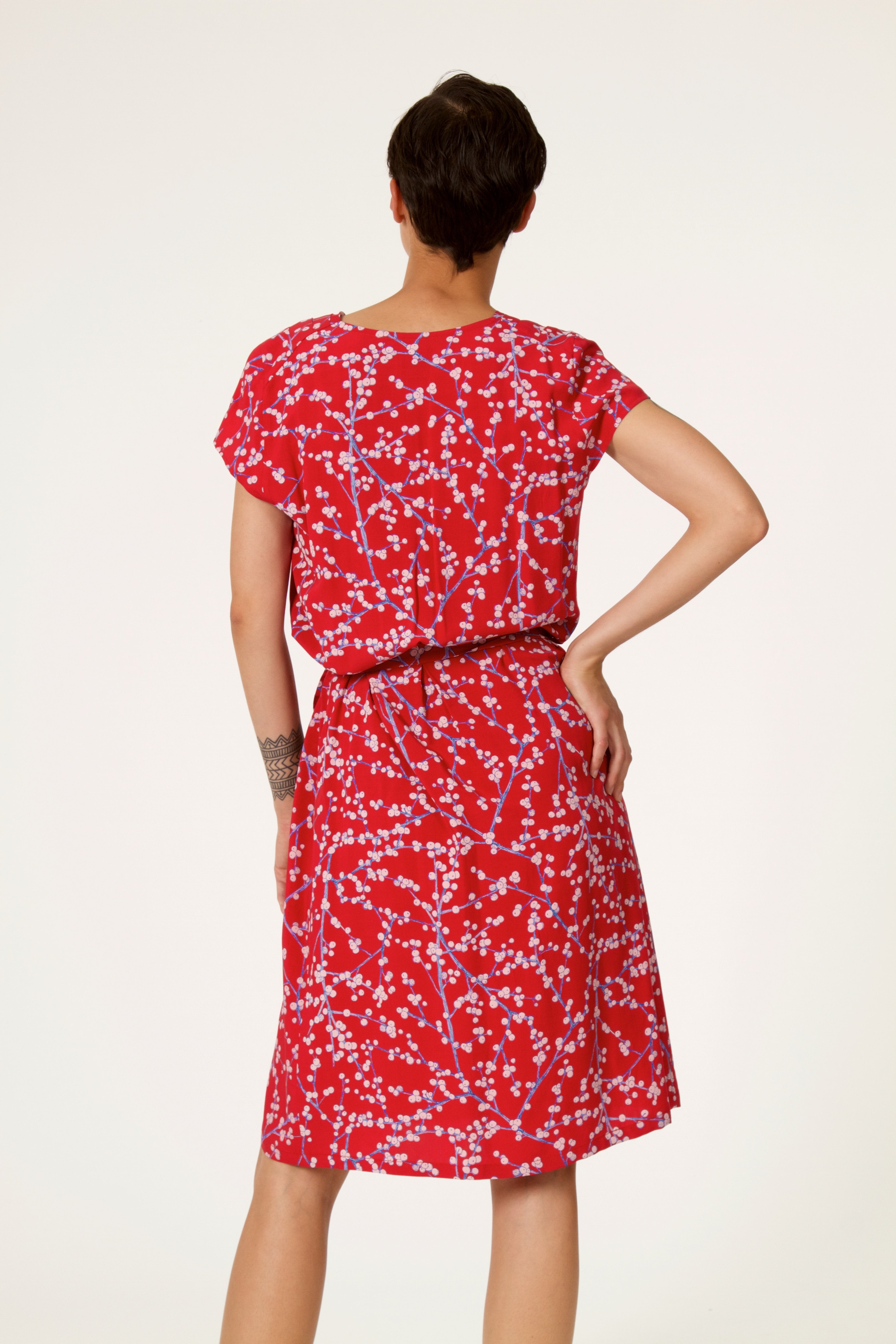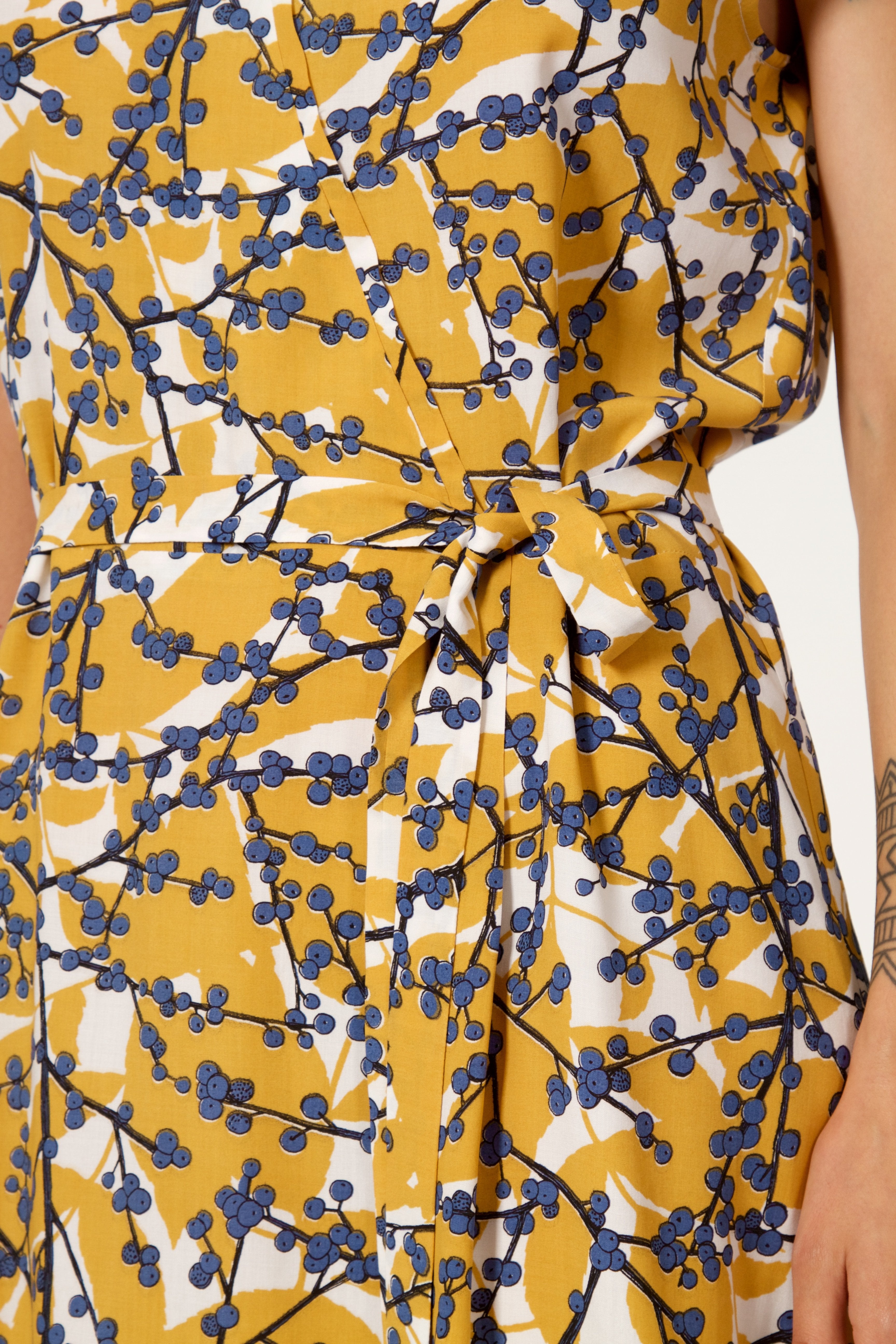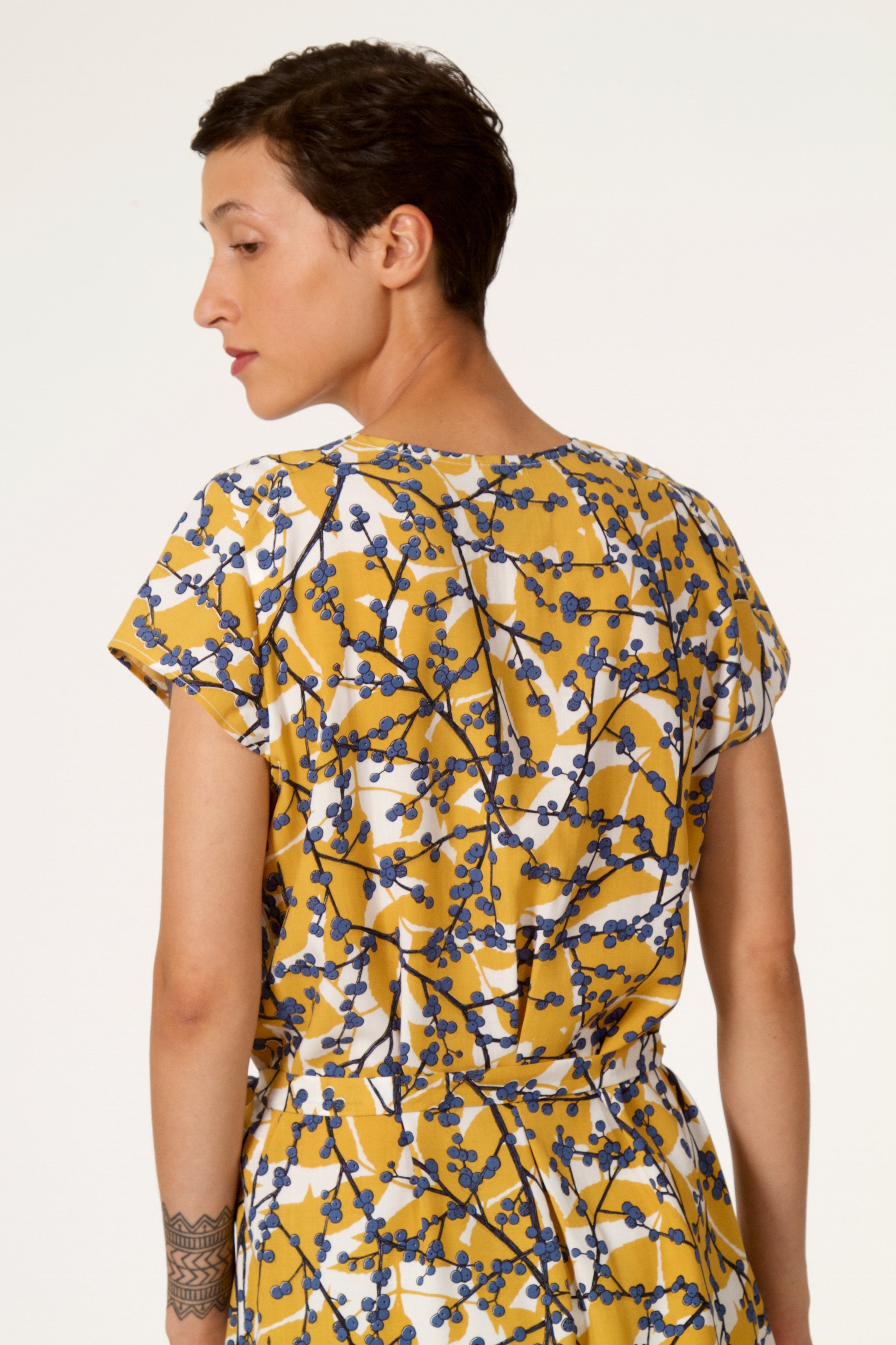 Robe « fausse-portefeuille » longueur genoux à manches courtes en viscose imprimé exclusif. Col V.