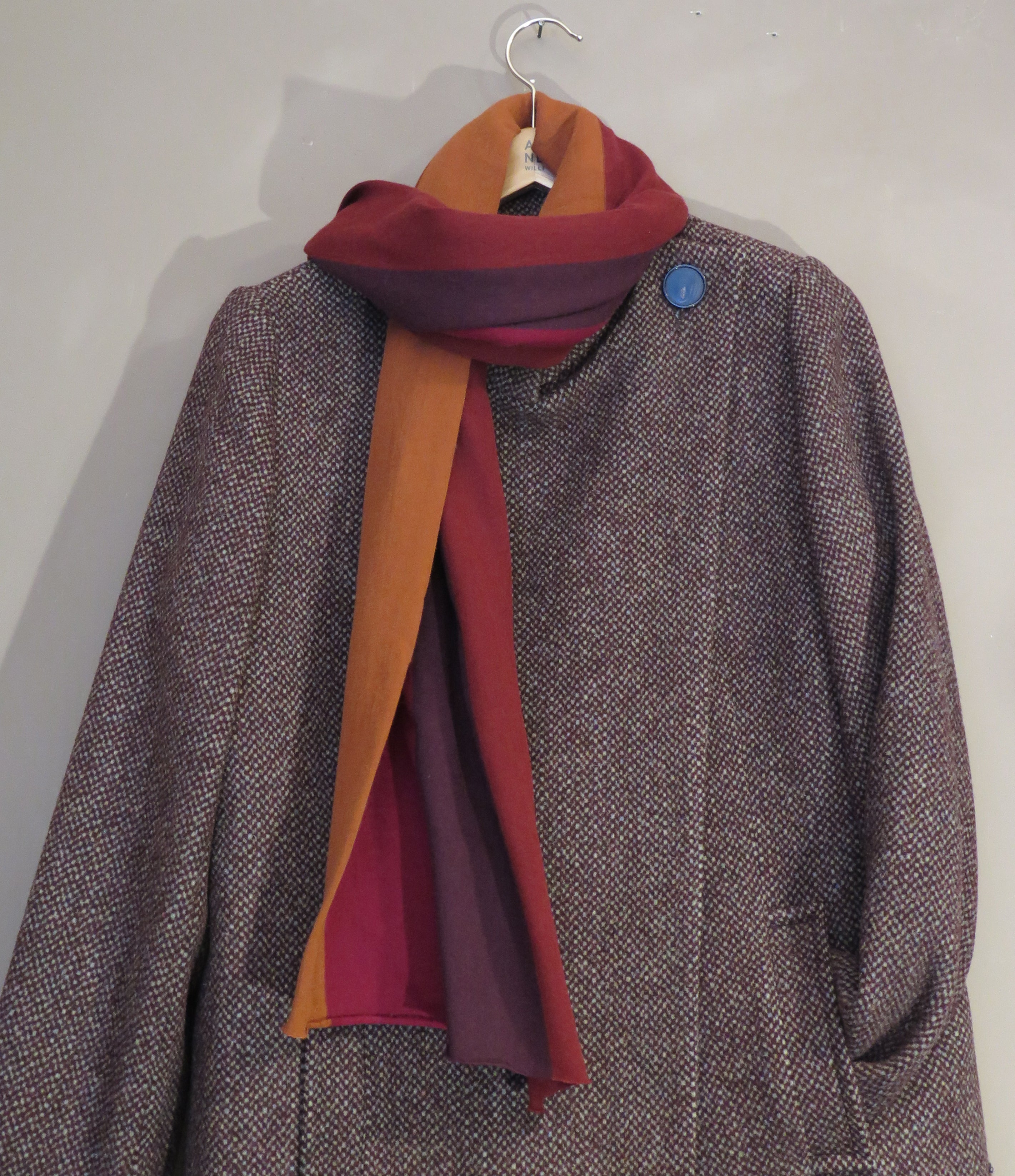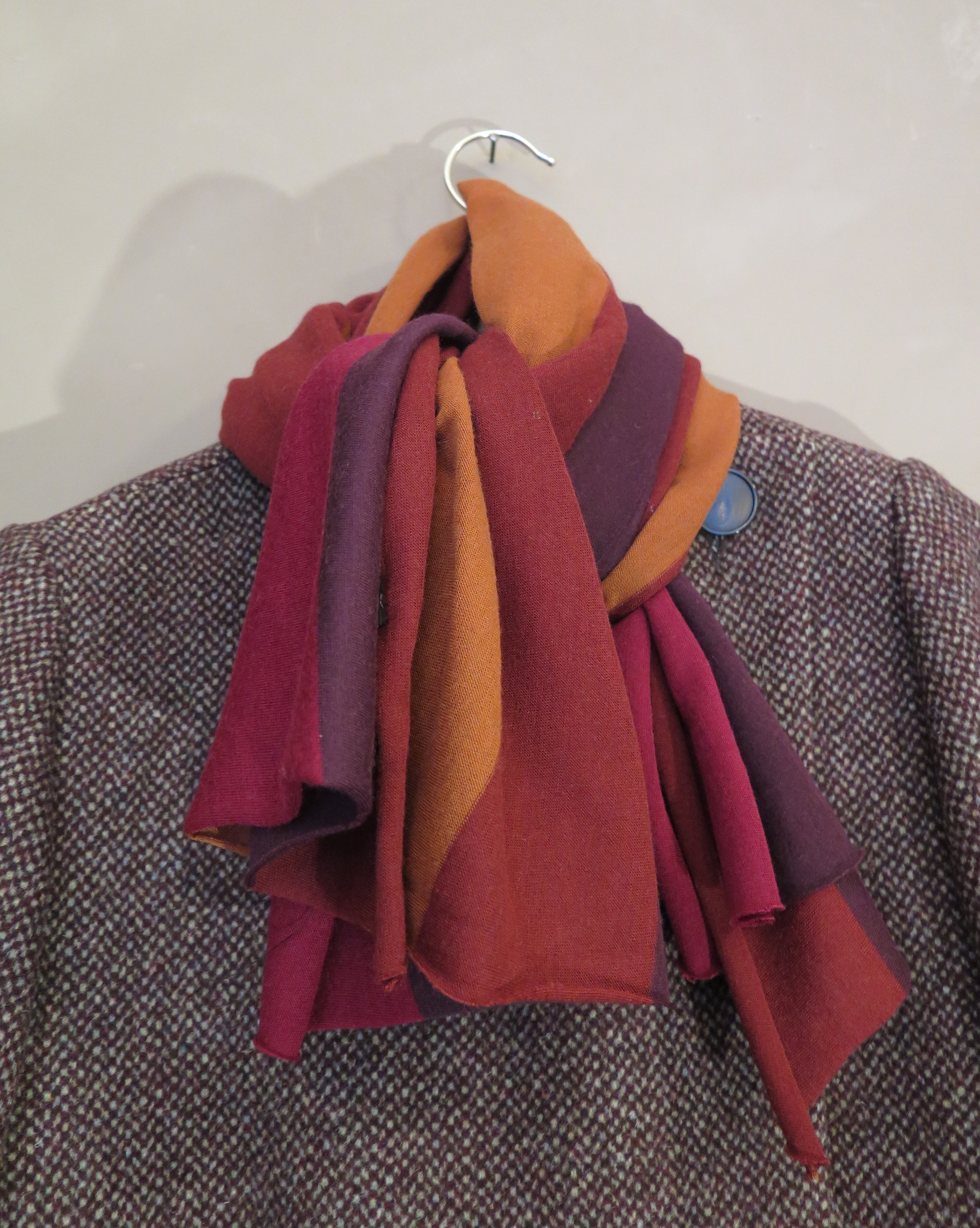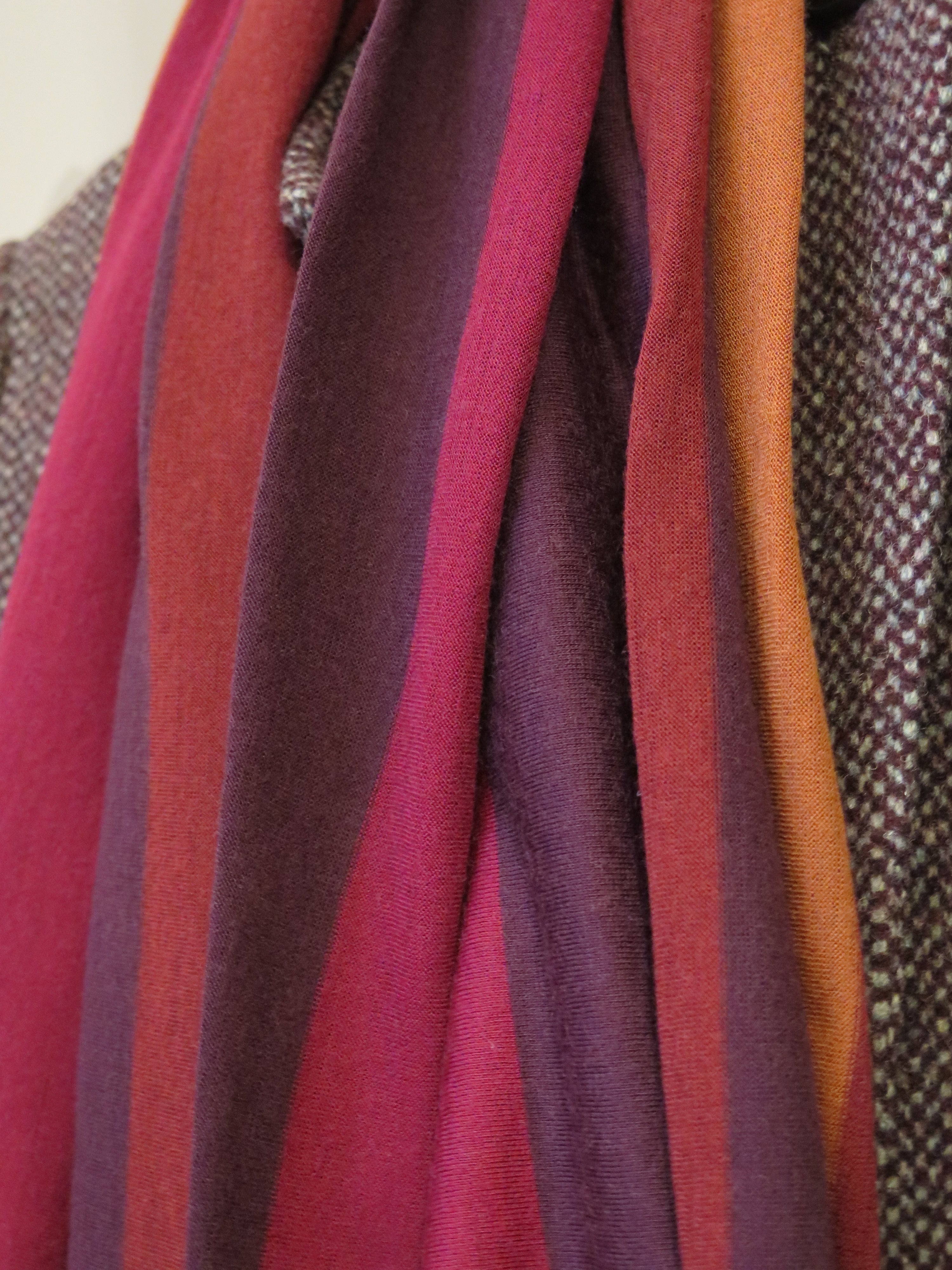 Pretty red striped scarf, 100% wool, made in our workshop in Paris.