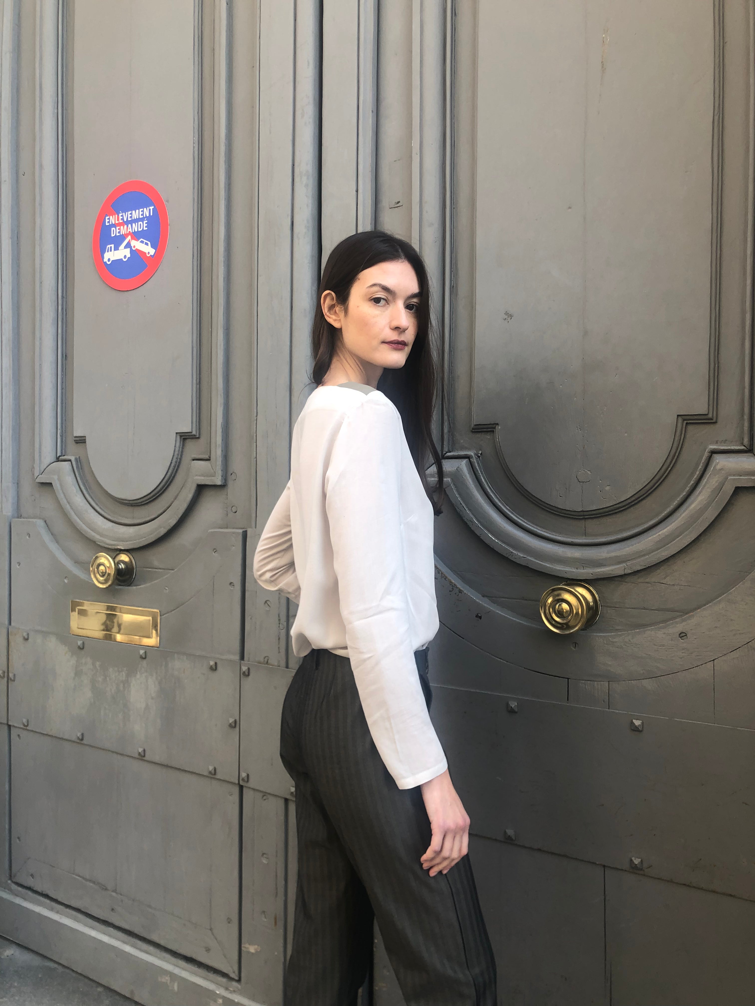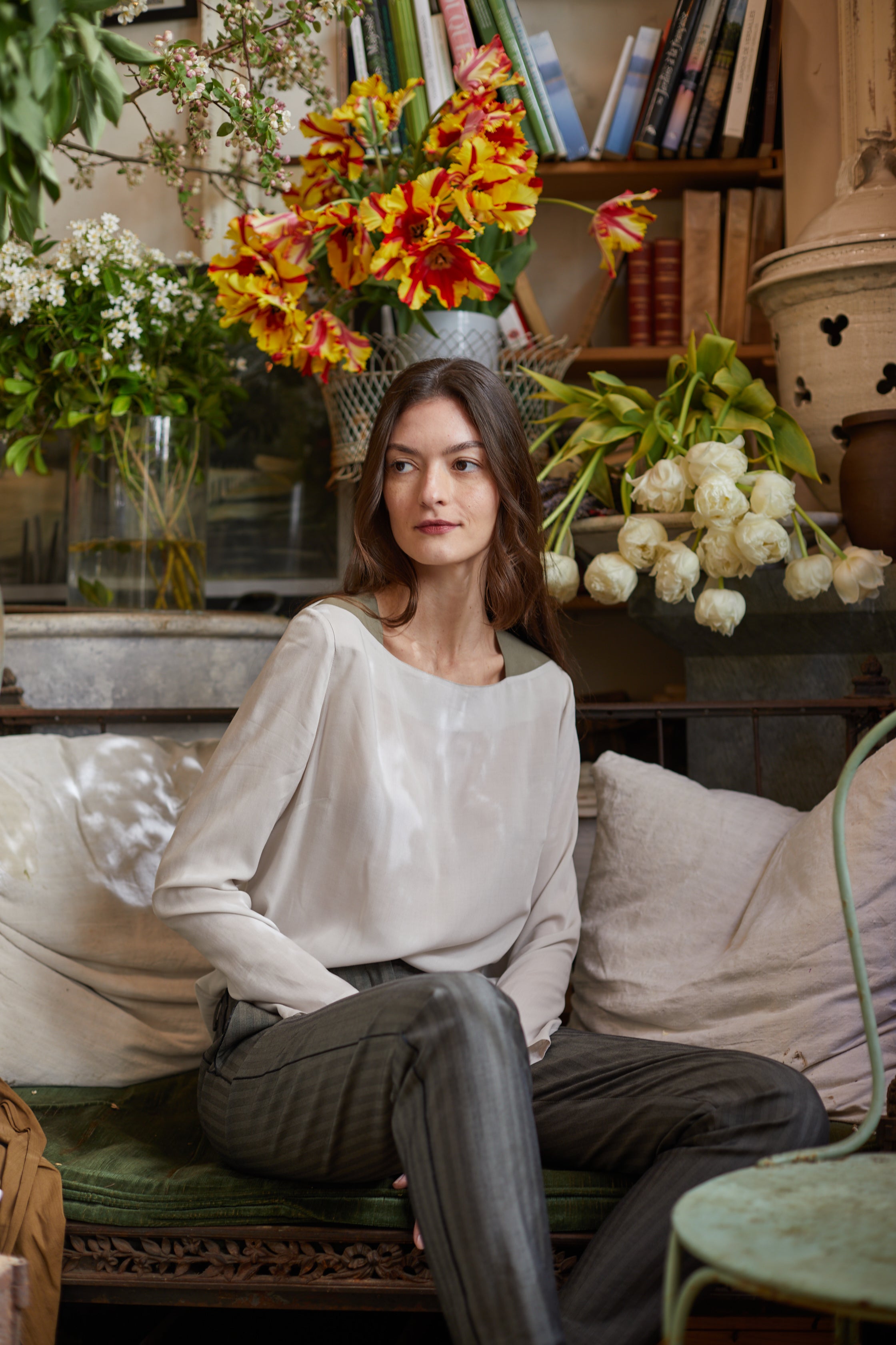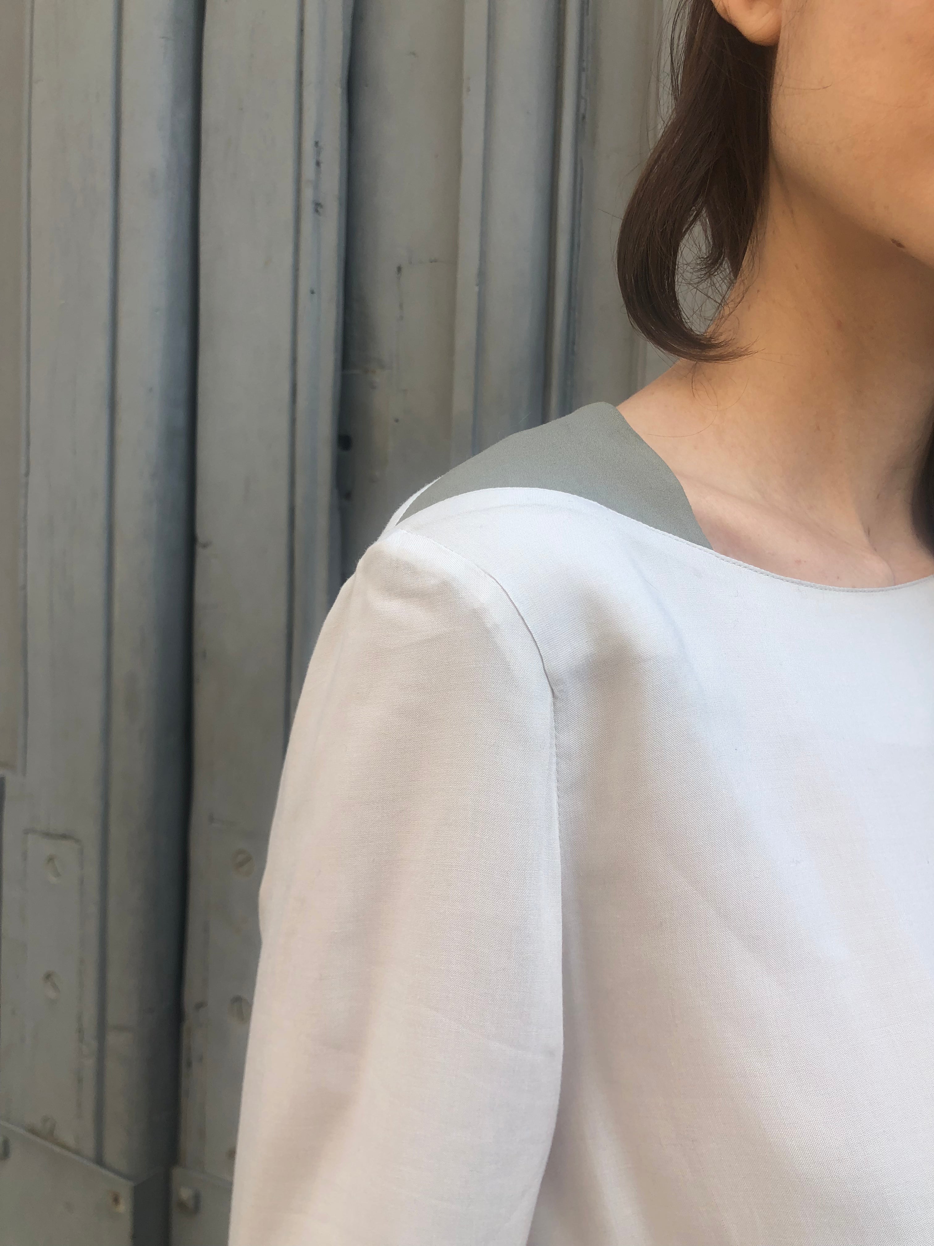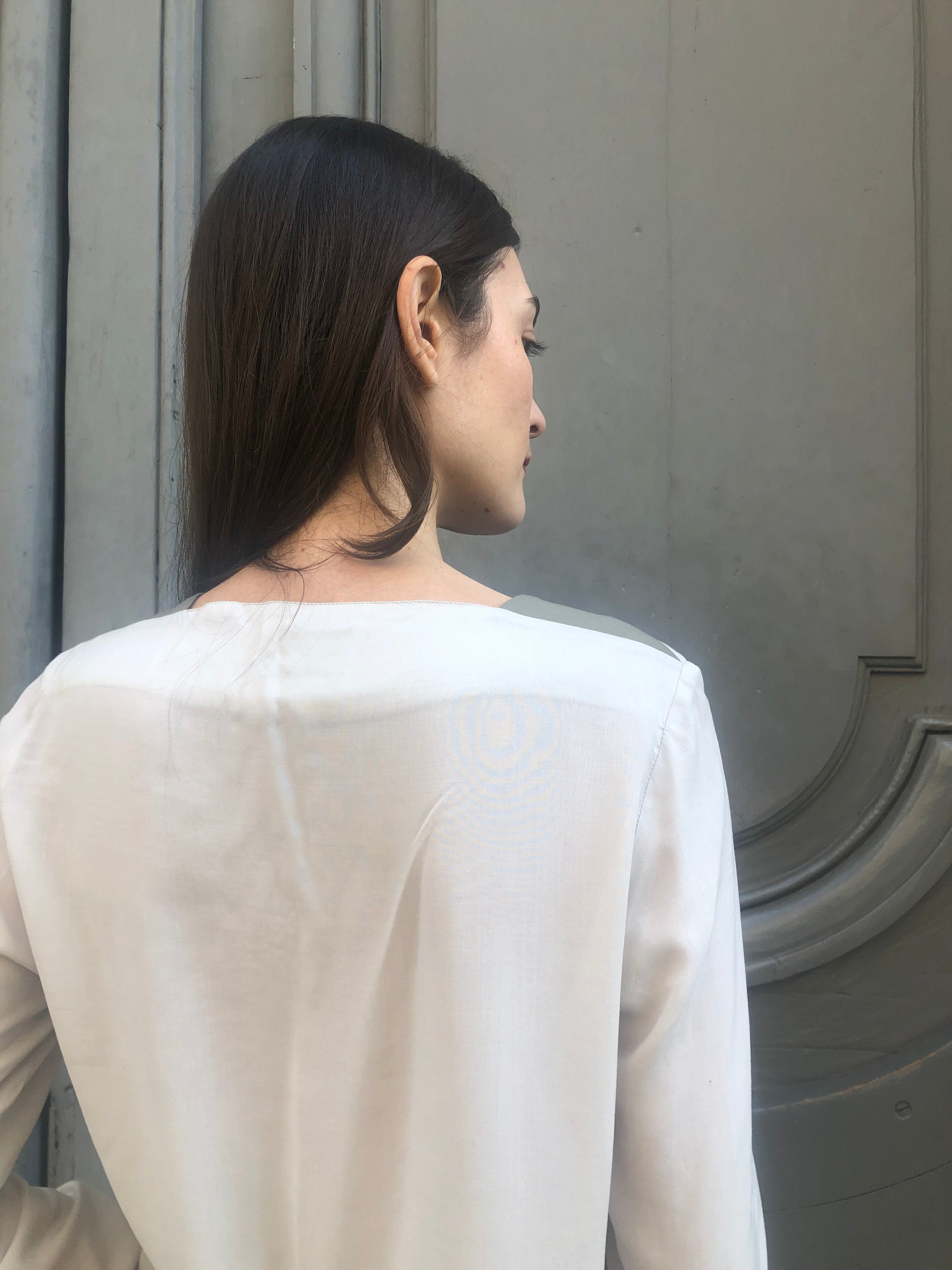 BLOUSE that seems very simple but which plays on the graphic colors.