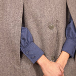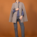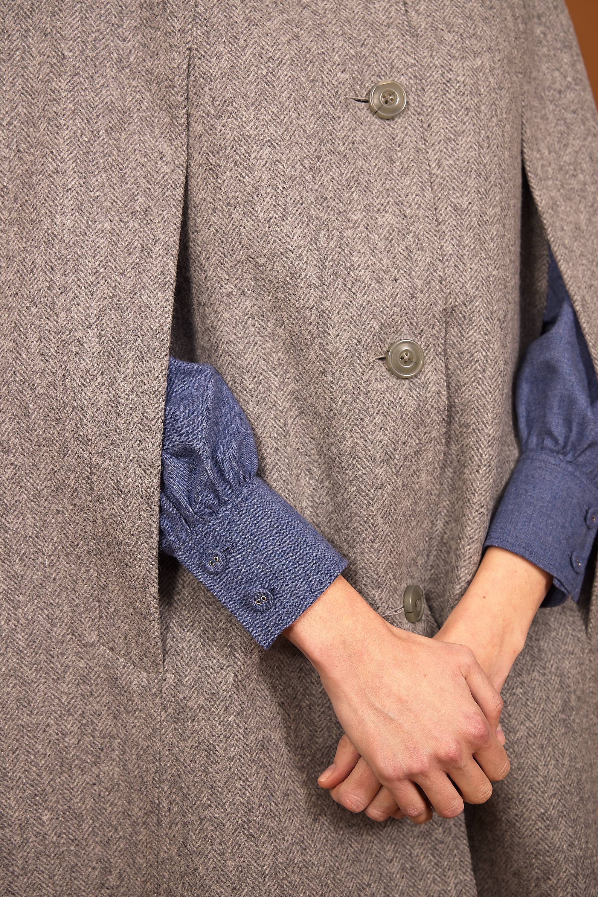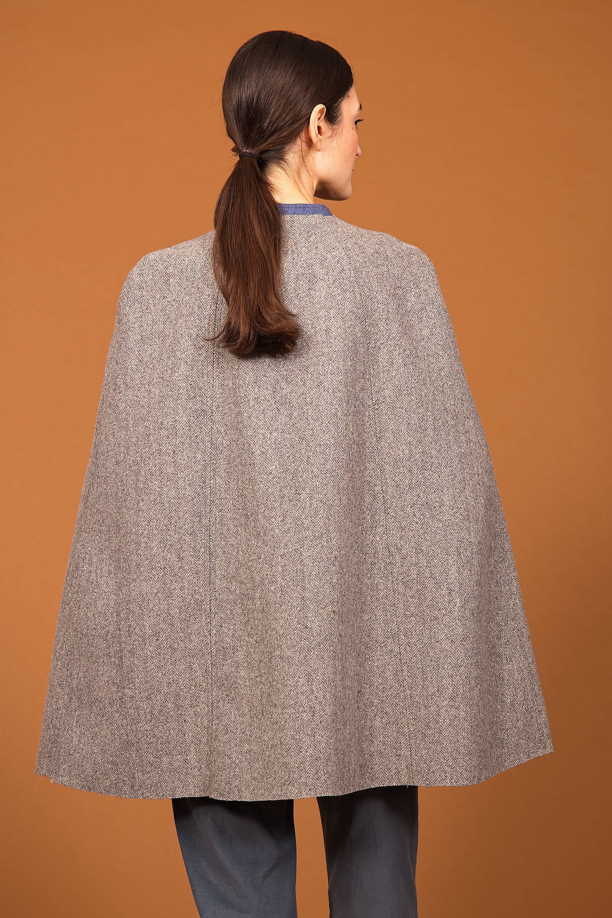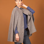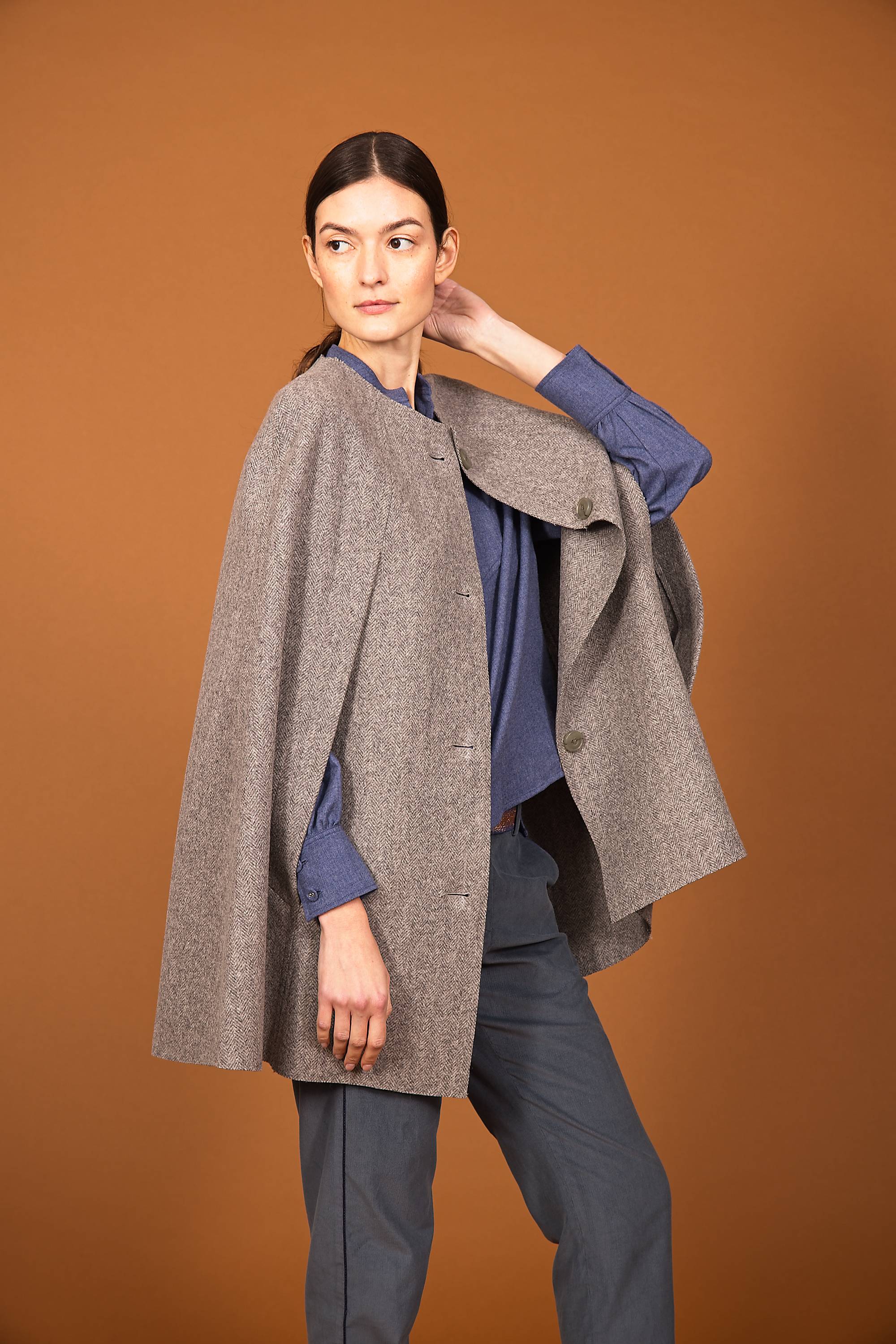 Grey cape with a round neck and button closure at the front. Made from vintage, eco-friendly natural wool, the ISAÏ cape is a must-have piece that will keep you warm this winter.
