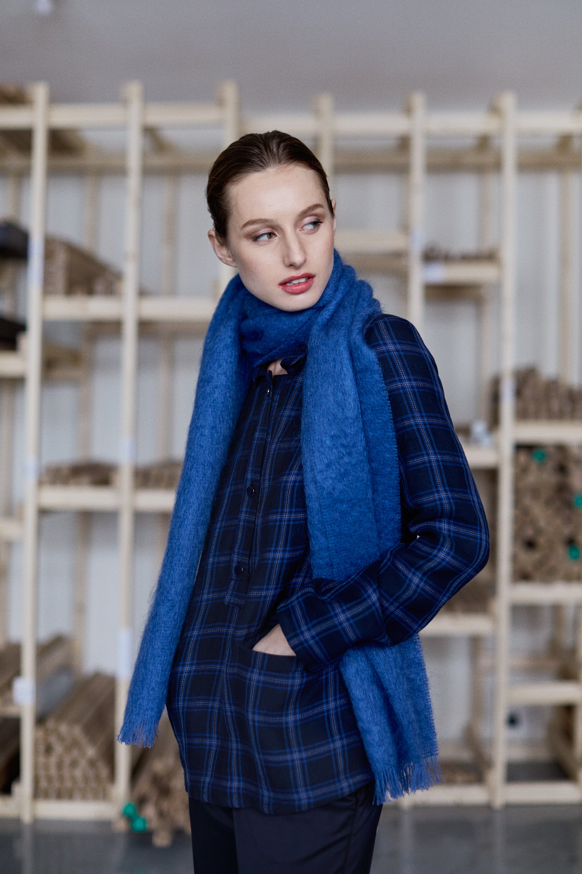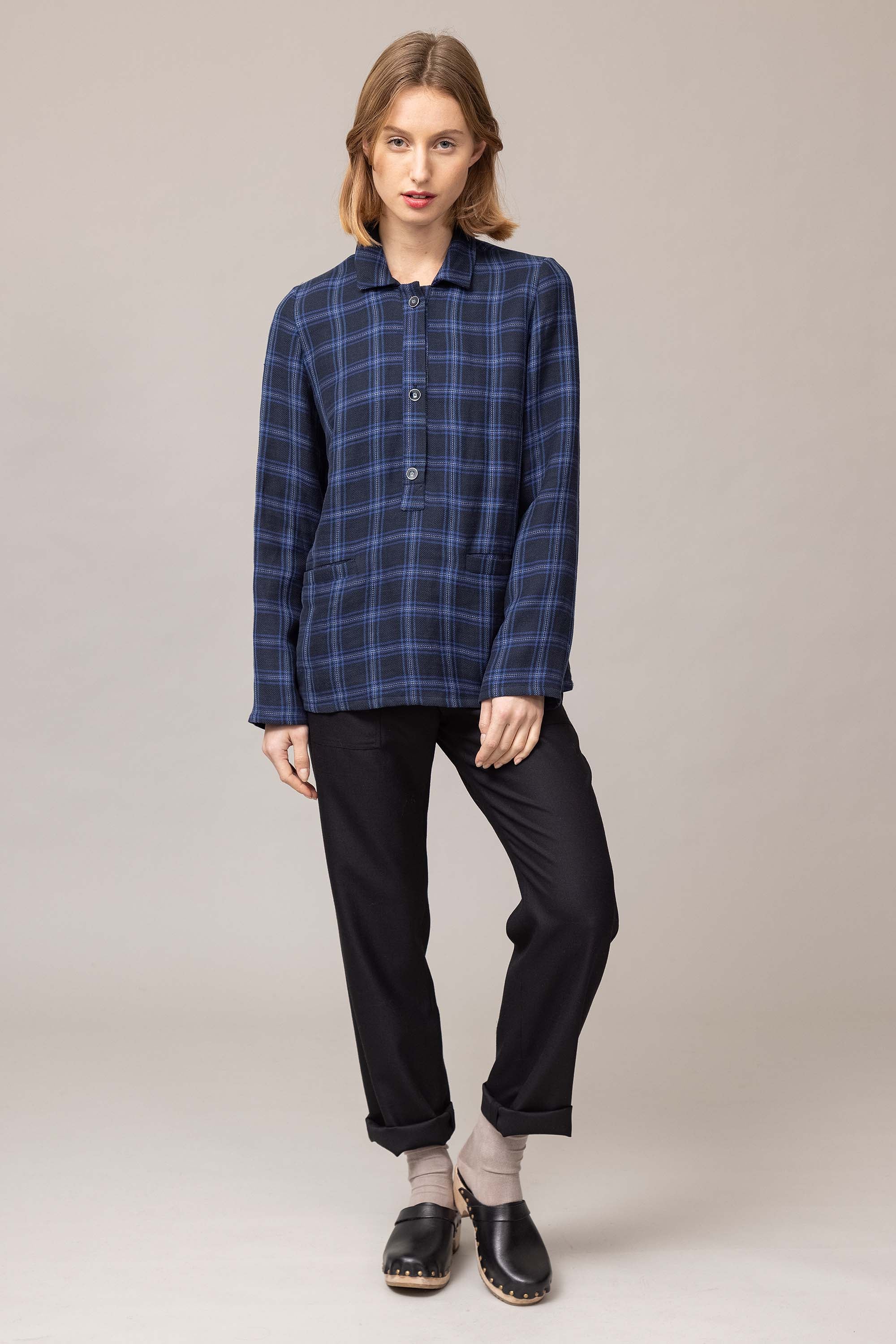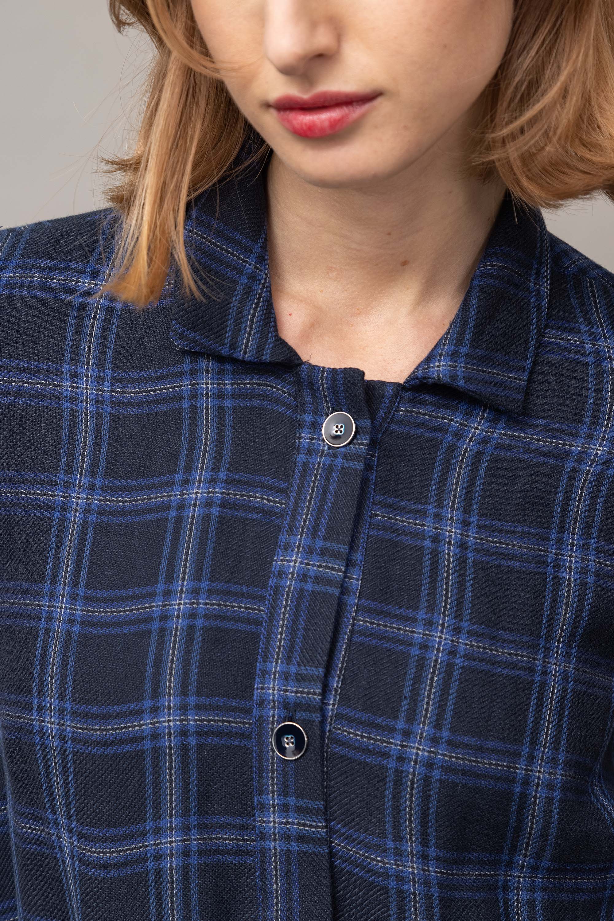 Straight blouse with shirt collar, buttoned at the front, cut from soft Italian wool fabric.