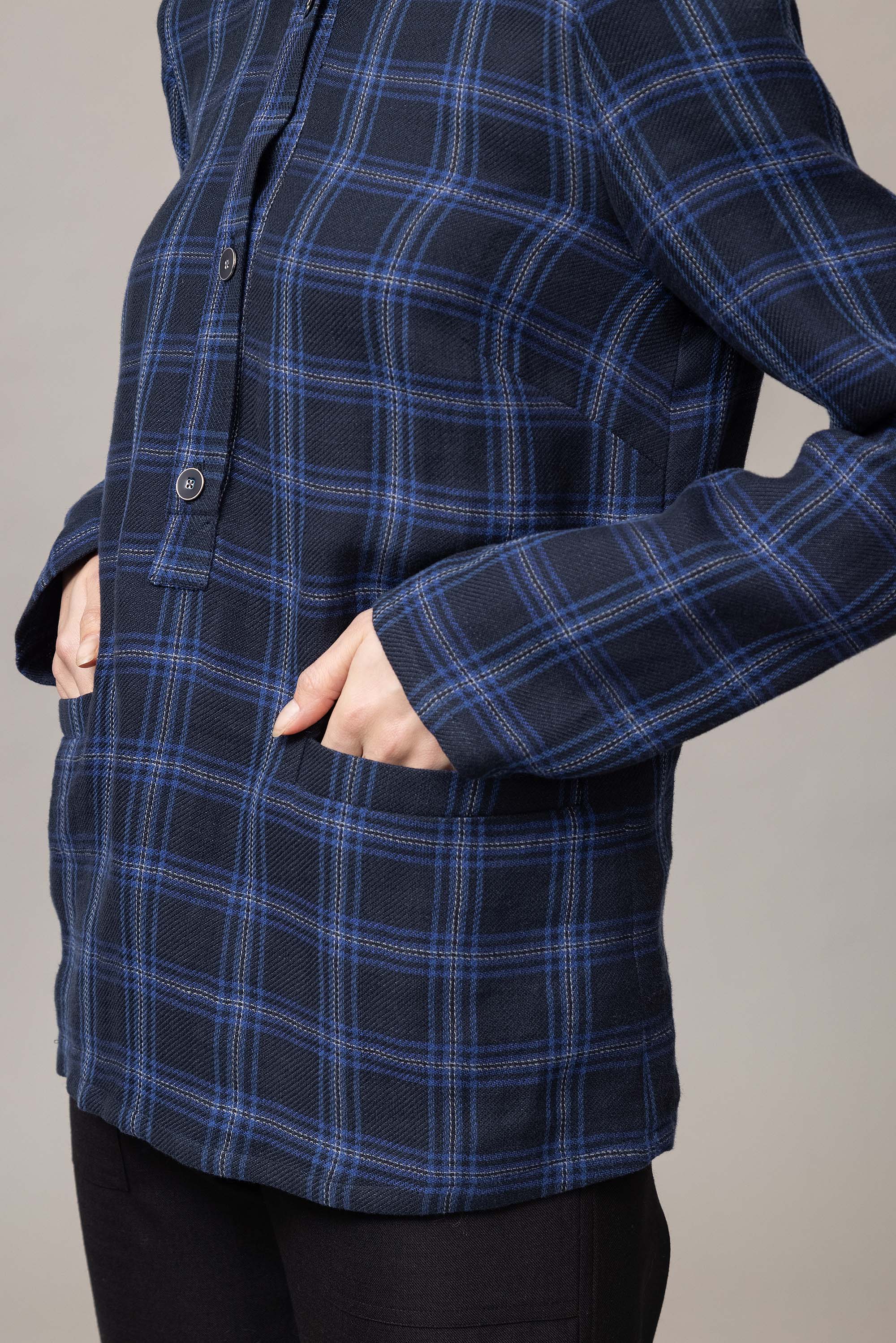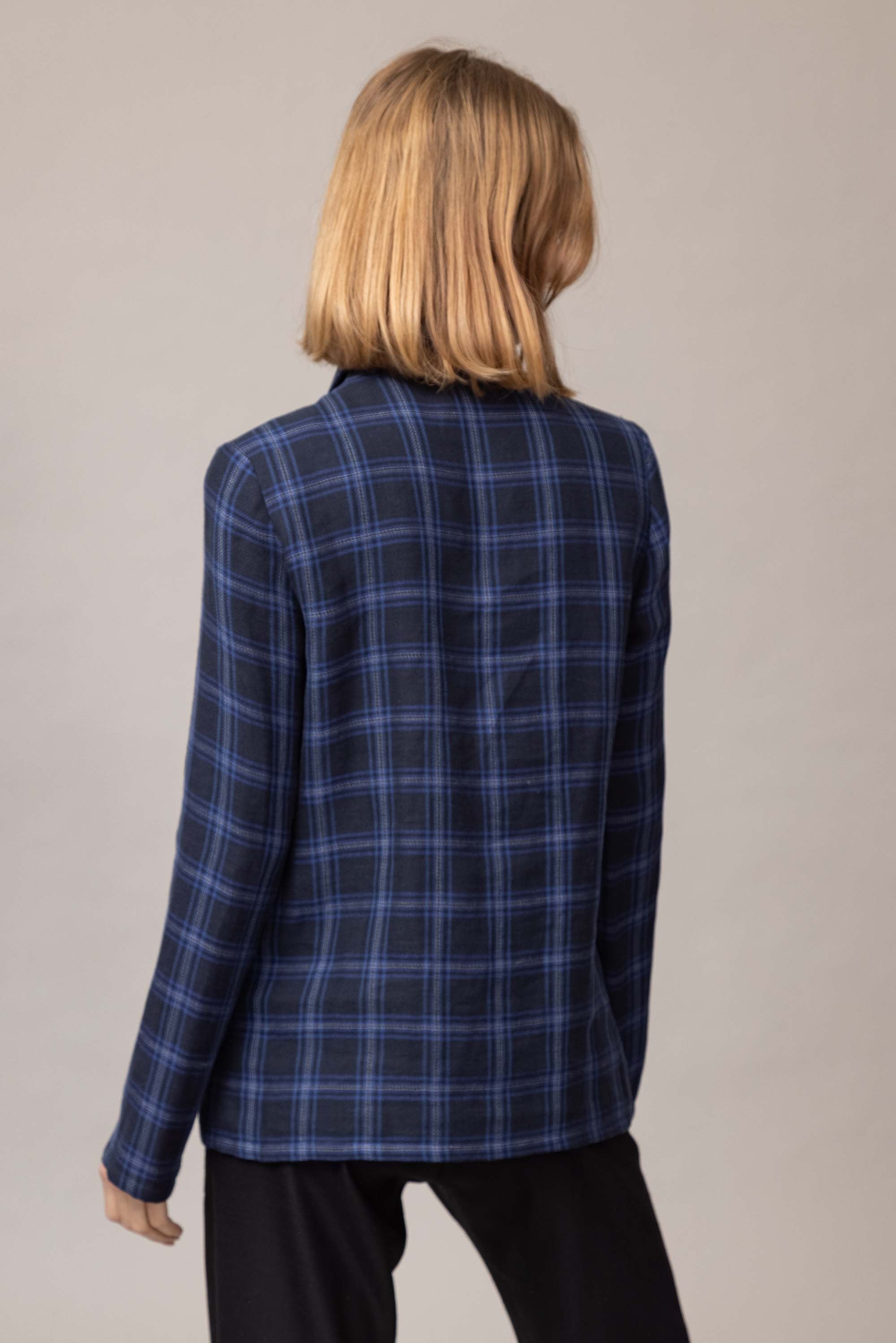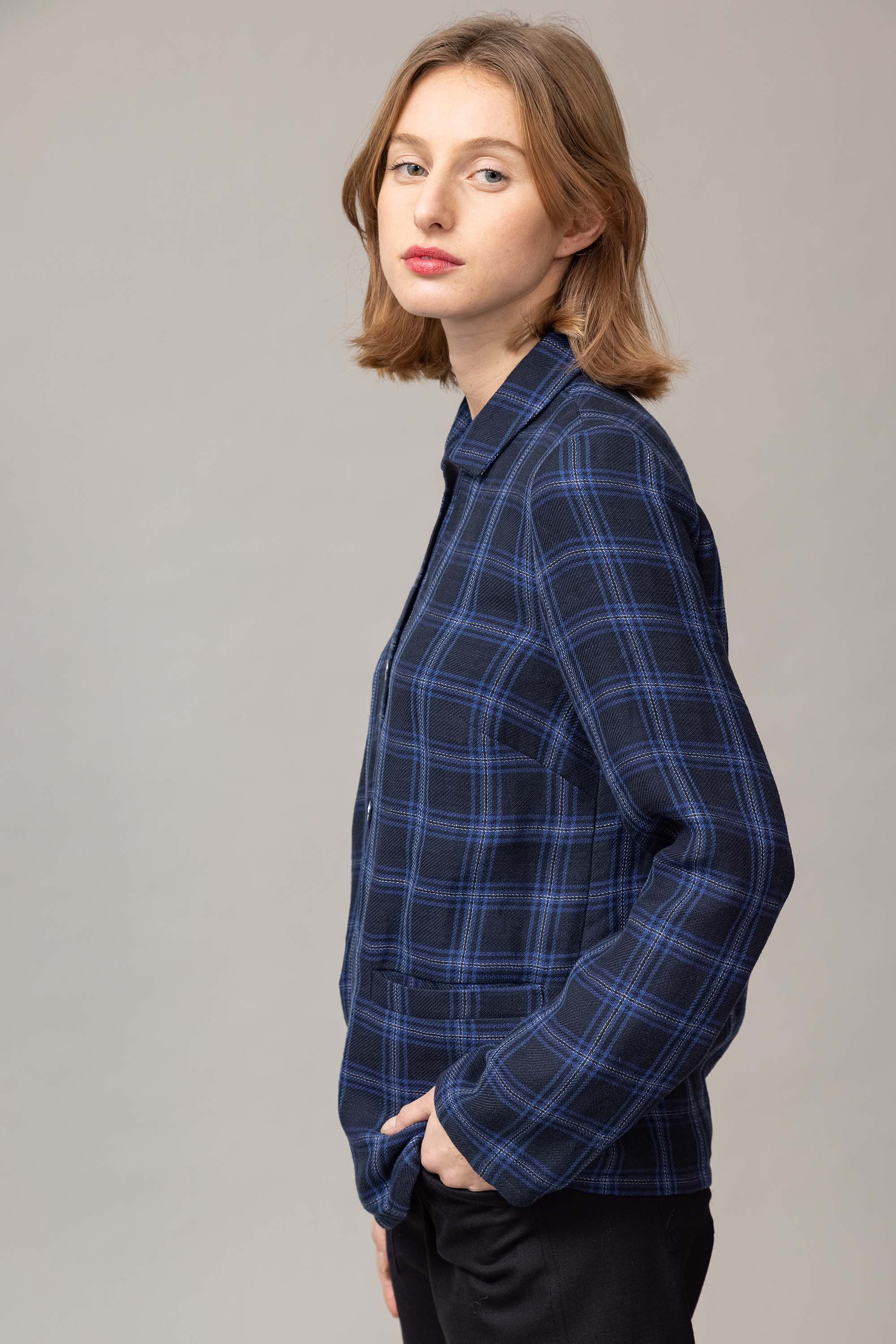Straight blouse with shirt collar, buttoned at the front, cut from soft Italian wool fabric.
