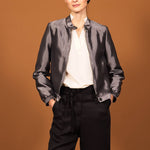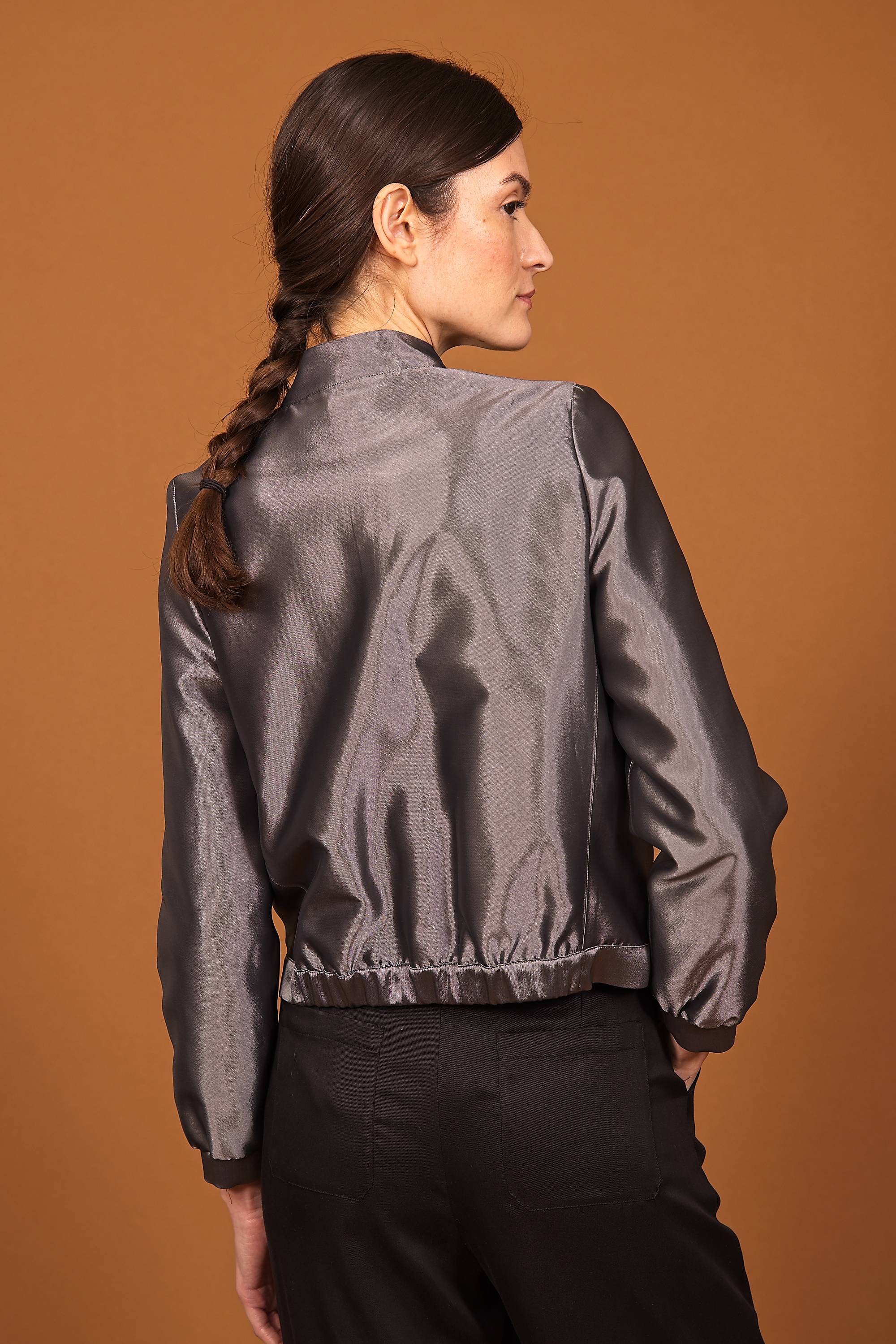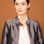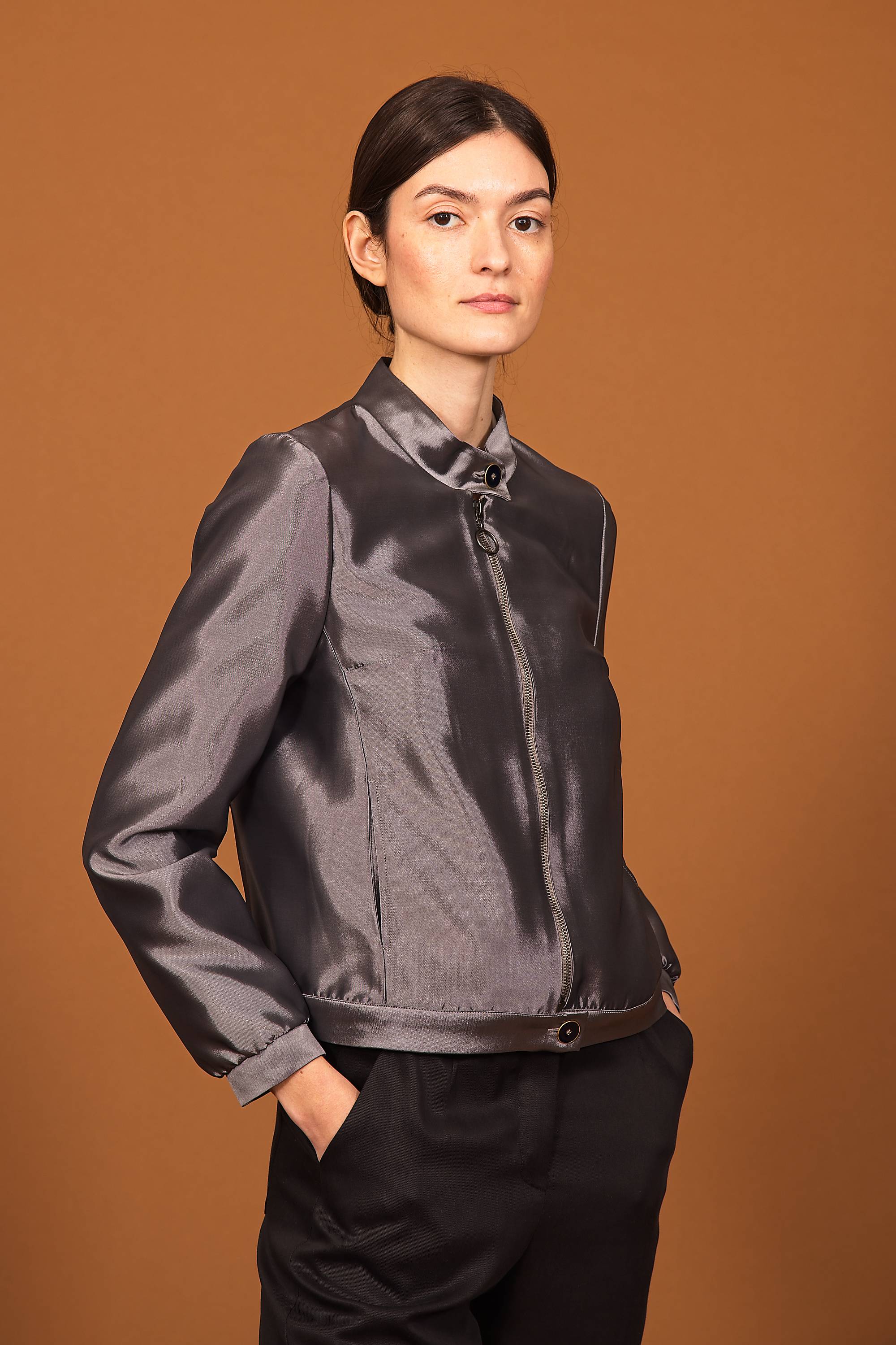 Anne's favorite piece! Original and full of character, this iconic little jacket from the brand, in a scarab-colored design, is cut from a moiré Lyonnais fabric. It will enhance your chic or casual outfits.