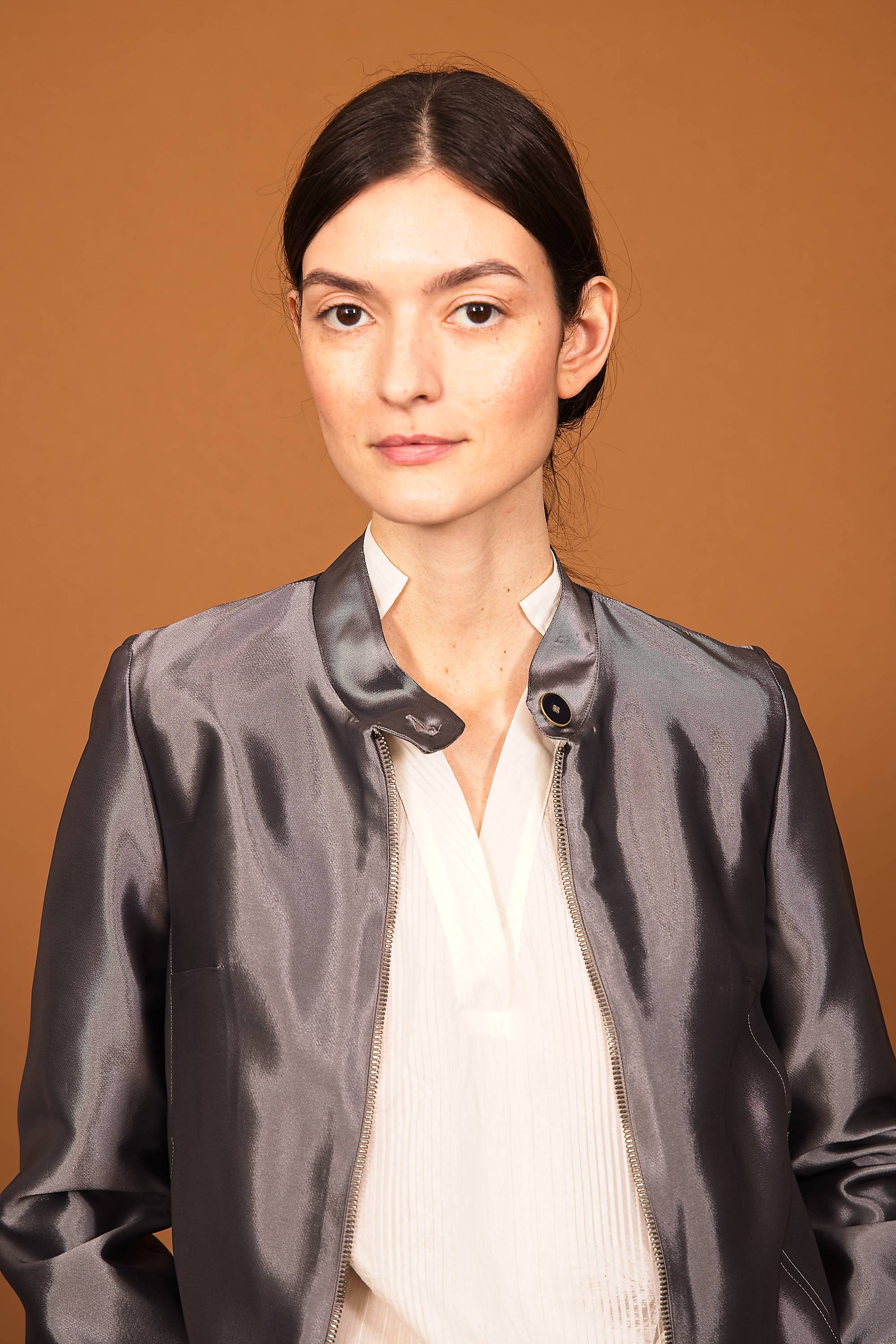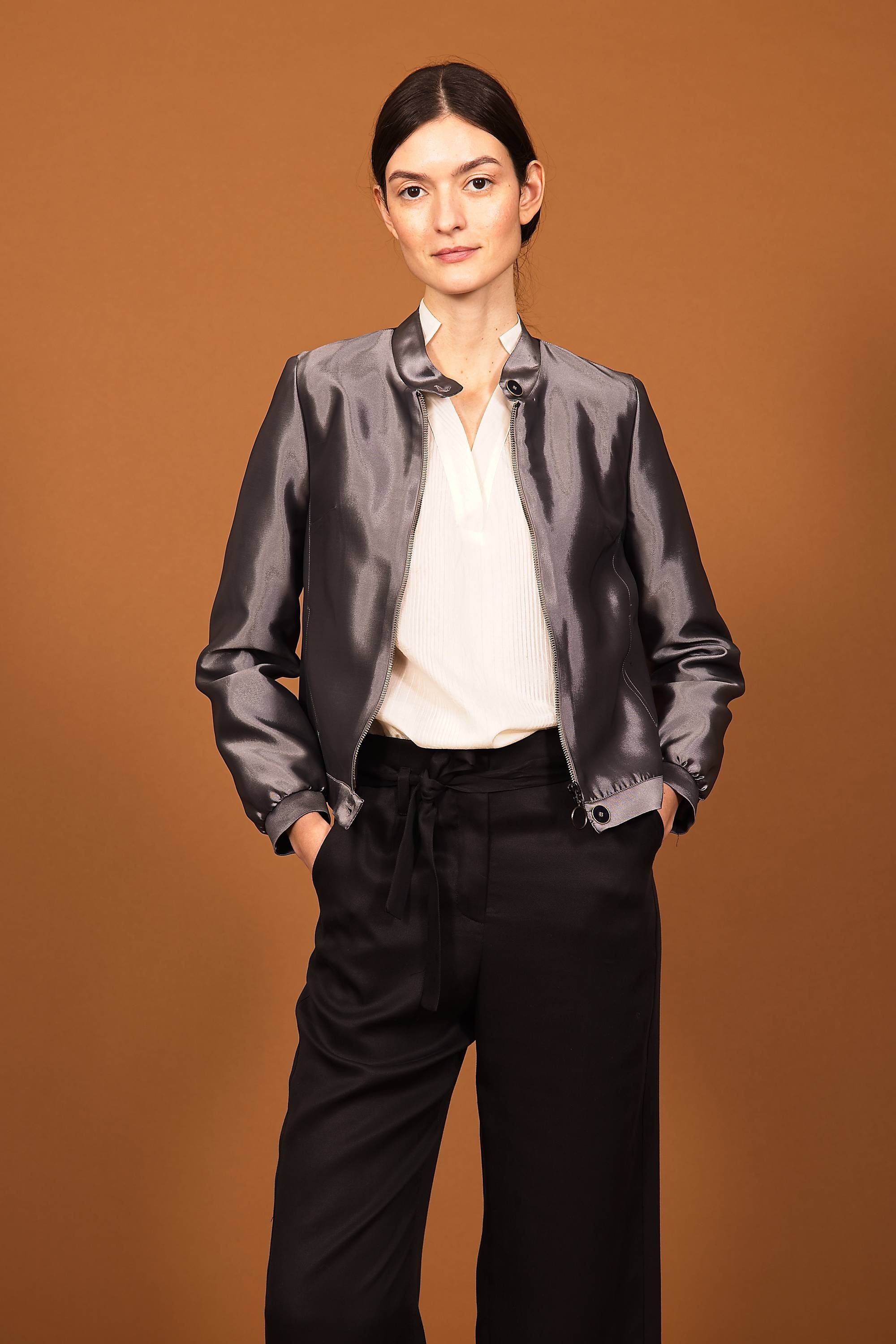 Zipped front, rounded shoulder yoke, 2 patch pockets. Fully lined in the Anne Willi logo lining.